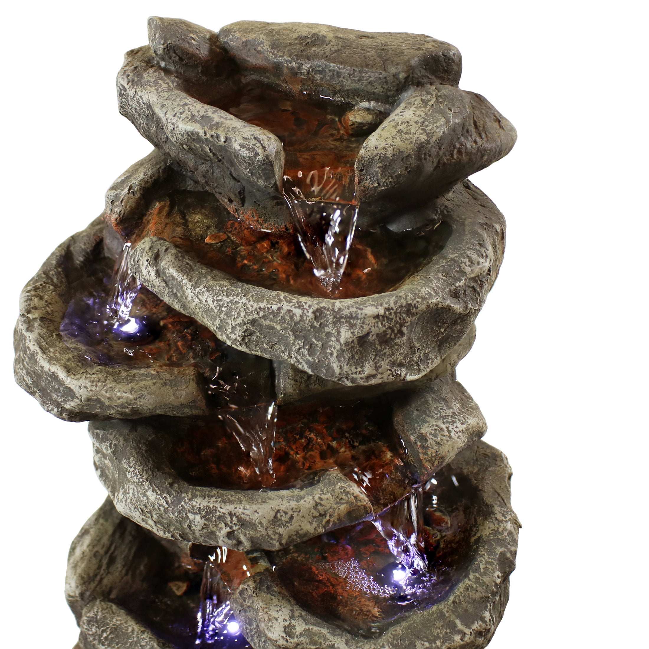 $81.66This durable lightweight fountain is designed to look like real stacked stones with water flowing over each of the 6 levels of rock pools. Made from durable polyresin and fiberglass, this small fountain captures the beauty of nature but uses a lightweight, easy-to-maintain material. It’s just the right size for an end table, desk, or dresser. The electric pump enables the gently flowing water to flow from the top tier all the way down to the bottom pool where it circulates back through the fountain. The small, tiered fountain features small pebbles in each rock pool, padded feet to protect the table surface, natural detailing, and LED lights on the 3rd, 5th, and 6th levels to illuminate the fountain during the evening hours. Plus, this fountain conveniently plugs into any standard electric outlet. Place this fountain in the living room, bedroom, kitchen, or office to stay relaxed anywhere.
