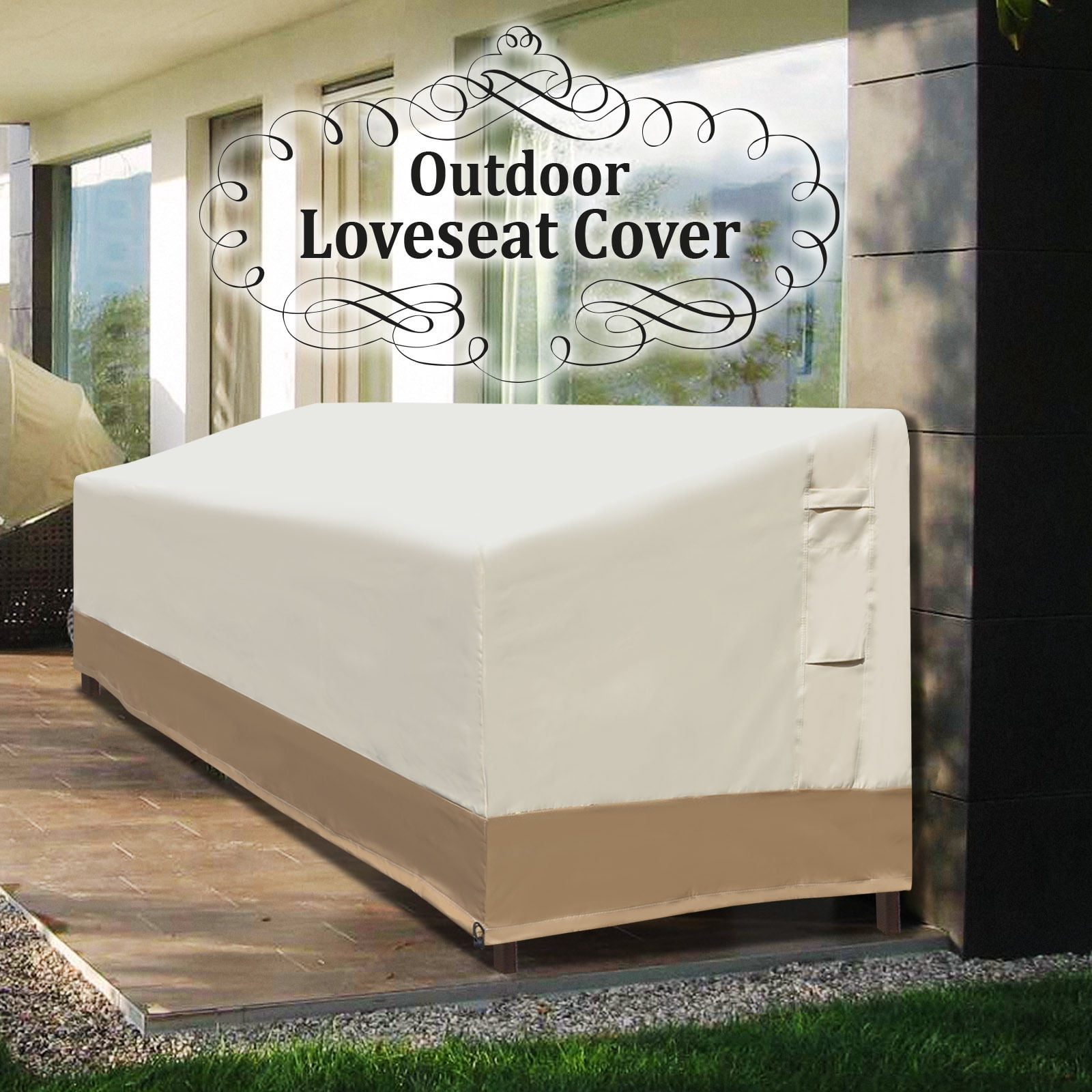 $57.30High quality and brand new, 100% waterproof. perfect for outdoor loveseat or bench Cover Size: 89.76″(228cm) L x 34.25″(87cm) W x 33’’(84cm)/ 23.62″(60cm) Elastic hem cord with a toggle allows adjustment for a tight and custom fit. Material: 600D/PVC Oxford fabric Color: BEIGE Gross Weight(LBS/KG): 5.5lbs/ 2.5KG