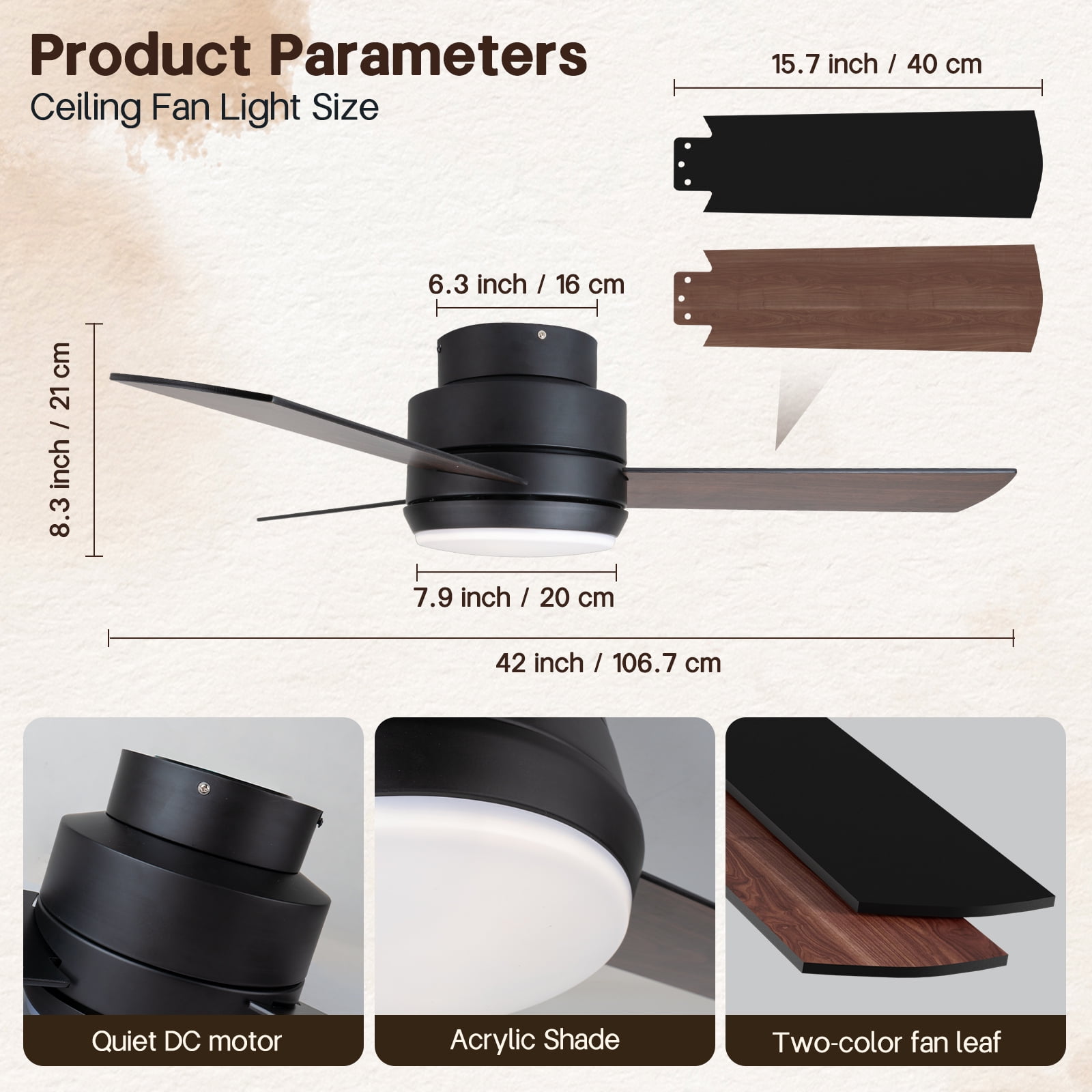 $103.19Create The Ideal Amience: With a blade span of 42 inches, this ceiling fan is perfect for circulating air in your bedroom or home office. The shade is covered by white glass to keep home interiors inspired, and its elegant look will instantly add character to your interior, and the compact, recessed, low-profile design fits snugly against the ceiling, making it ideal for use in rooms with low ceilings. Our three-blade ceiling fan light provides powerful air circulation and soft lighting. Its sleek look will instantly add character to your home.3 blades can be flipped to reveal the sides of cherry or walnut finishes. Comes with an LED light, a Recessed ceiling fan, and a dimmable LED light in one, a Powerful and quiet copper motor, and 3 reversible blades. High quality and safe for daily use. Perfect for rooms with low ceilings such as living rooms, bedrooms, dining rooms, or family rooms.
