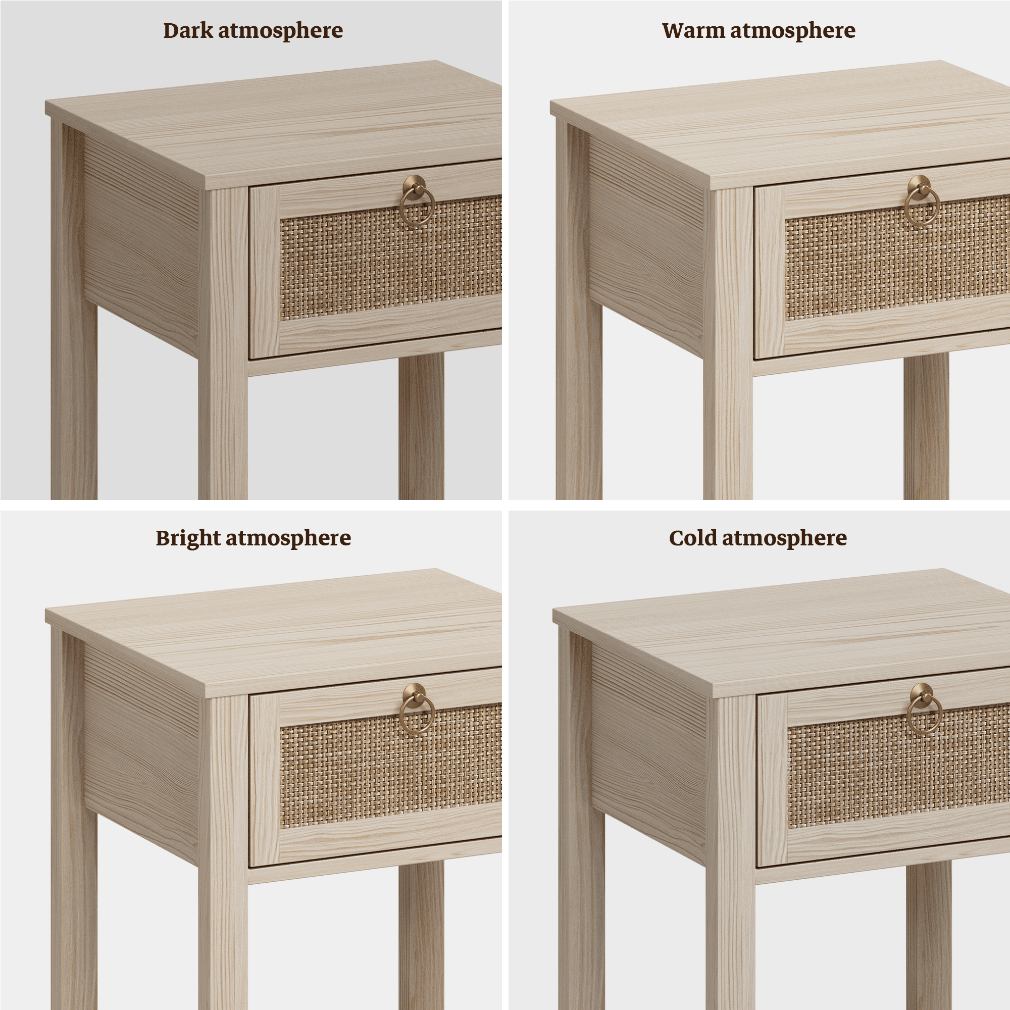 $94.59Original price was: $94.59.$85.13Current price is: $85.13.Specification: Color: White Material: MDF & Engineered Wood Size: 17.7” L x 15.2” W x 23.6” H Weight: 48.4lb/22kg Walnut Tabletop Its smooth and walnut surface, the side table is easy to clean and won’t be fade. Rattan Drawer The rattan drawer with handmade weaving technology, delivering elegant apparent effective add snugging to your home and offer large storage space. Bottom shelf The lower shelf offers more space to hold essential items, such as books, plants. Golden Pull Ring Drawer Handle With its own drawer handle, the drawer is easy to pull.