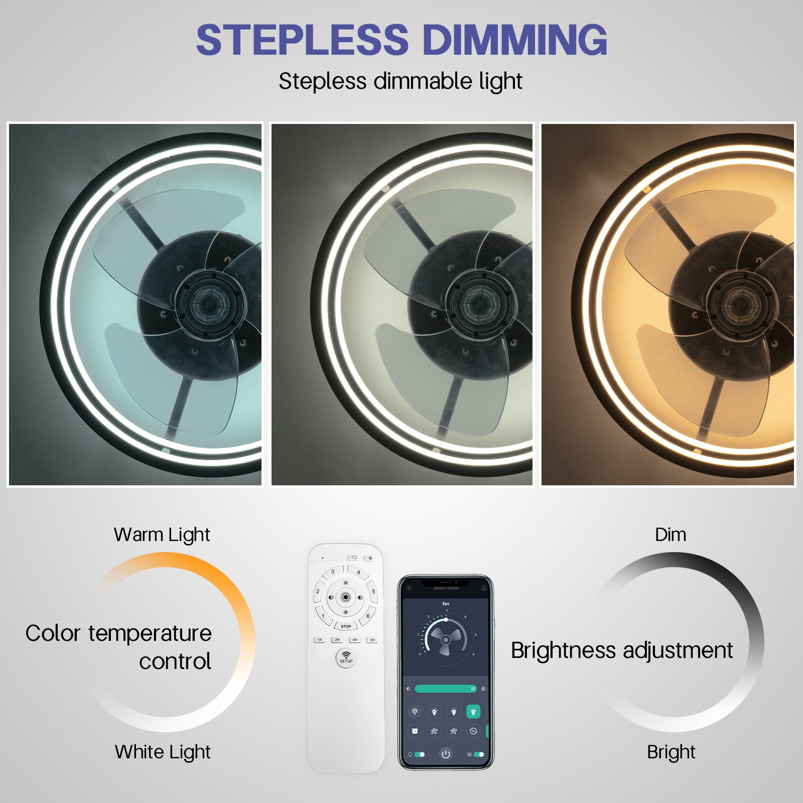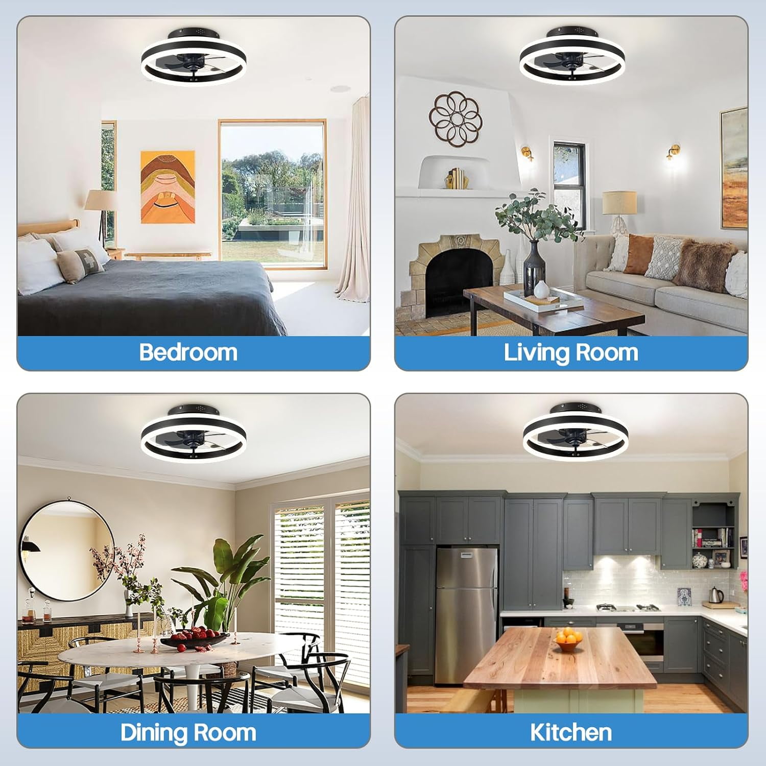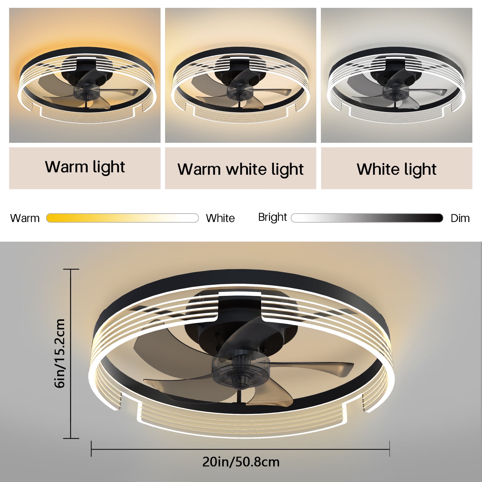 $46.43This 15.7″ ceiling fan with remote control dimming. Modern low profile ceiling fans with lights design lighting & ceiling fans to keep the interior home decorative and stylish. The LED energy-saving light has 3000K-6500K color temperature selectable, and light memory function.