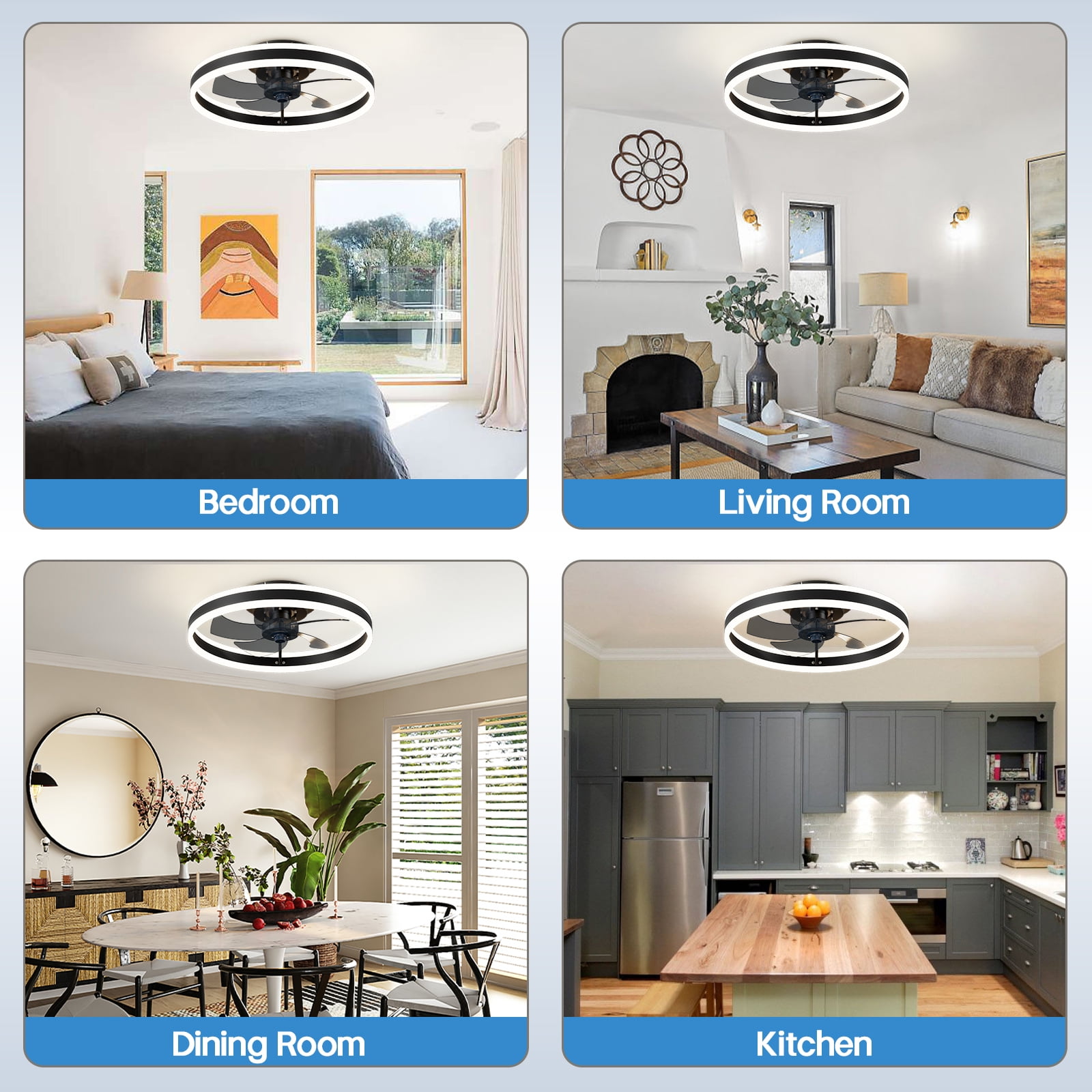 $103.19Dimmable LED Light: This flush mount ceiling fan light with bluetooth APP & remote control dimming. Modern low profile design electric ceiling fans with light to keep the interior home decorative and stylish. Safer & Multi-Speed: Smart enclosed ceiling fan lighting with invisible blades is safer than traditional ceiling fans, and has 6 wind speeds and timing to most needs. Reversible Motor: Available for all seasons. The fan’s DC motor runs smoothly, provides strong airflow, and has no noise. Night light mode can create a quiet and comfortable sleeping environment. Easy Installation: The round fixture is equipped with accessories, installed within a few minutes, can direct the cool air and is easy to clean. Wide Applicable: These small hanging fan lights are very suitable for an indoor bedroom, kitchen, living room, bathroom, hallway, office, cafe, kid’s room, dining room, bar, hotel, etc.
