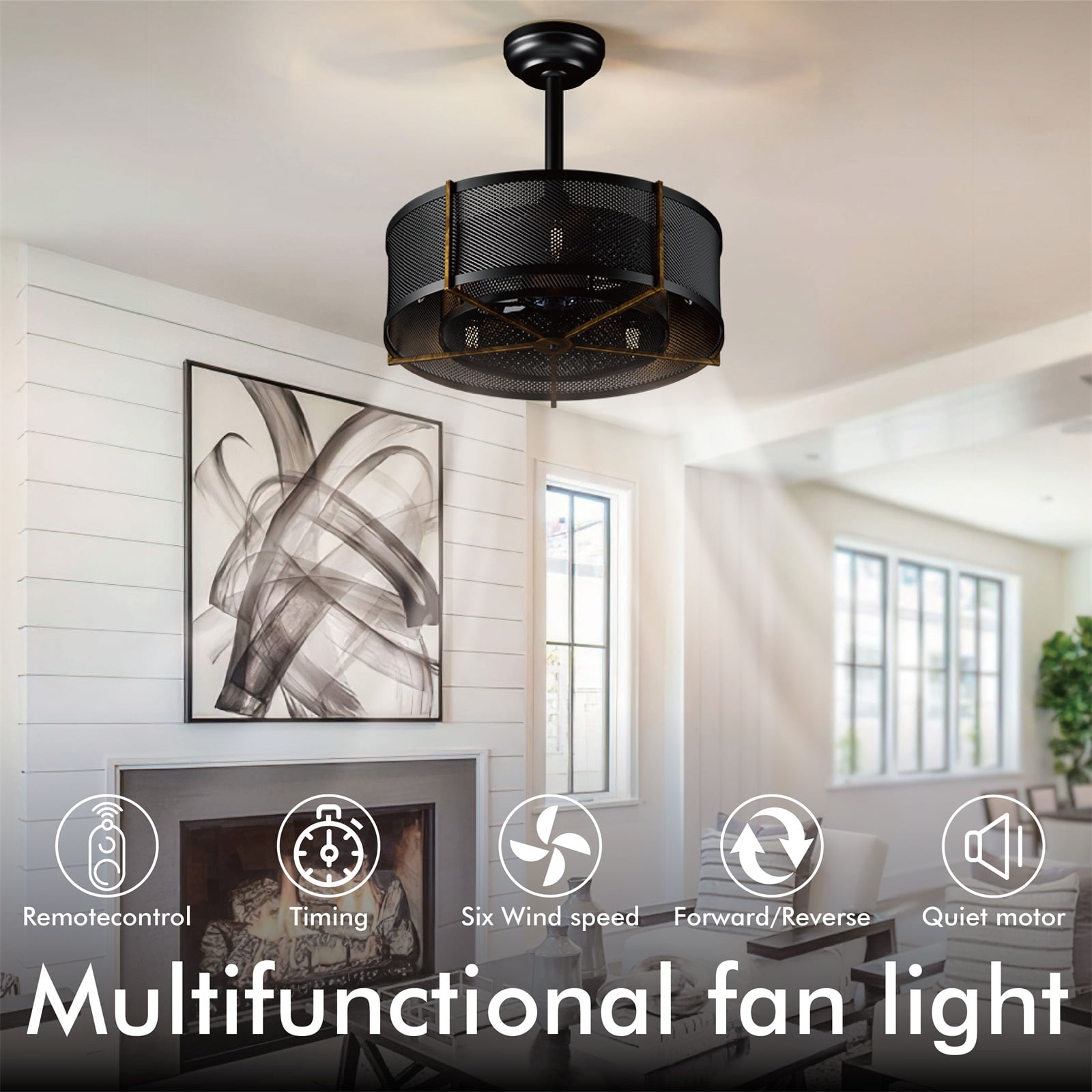 $68.79Unique Design: This industrial ceiling fan light is a combination of ceiling fan and lamp, it has a steel cage-shaped shade, which is novel, practical and decorative. The industrial ceiling fan light is ideal for living rooms and farmhouses