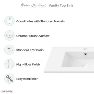 Swiss Madison Ceramic White 36″ Bathroom Vanity Top
