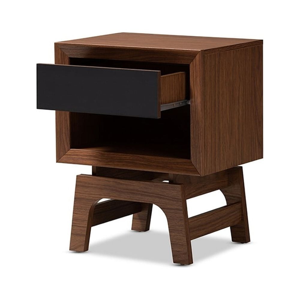 Svante Mid-Century Modern Walnut Brown and Dark Gray Finished Wood 1-Drawer Nightstand