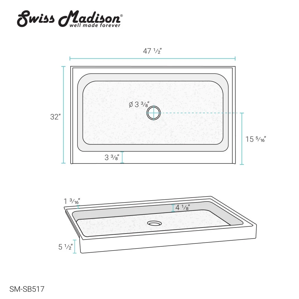 Swiss Madison Voltaire 48″ x 32″ Acrylic Black, Single-Threshold, Center Drain, Shower Base