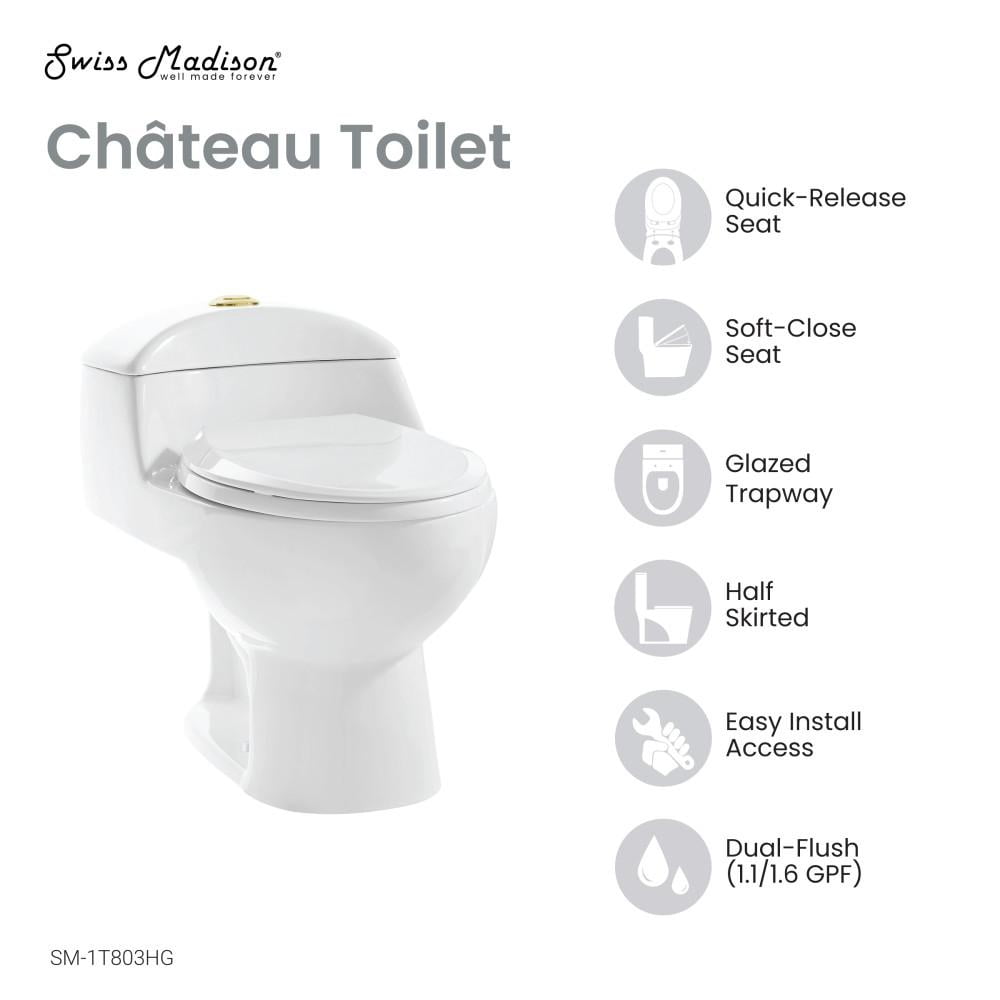 Swiss Madison Chateau One Piece Elongated Toilet Dual Flush, Brushed Gold Hardware 1.1/1.6 gpf