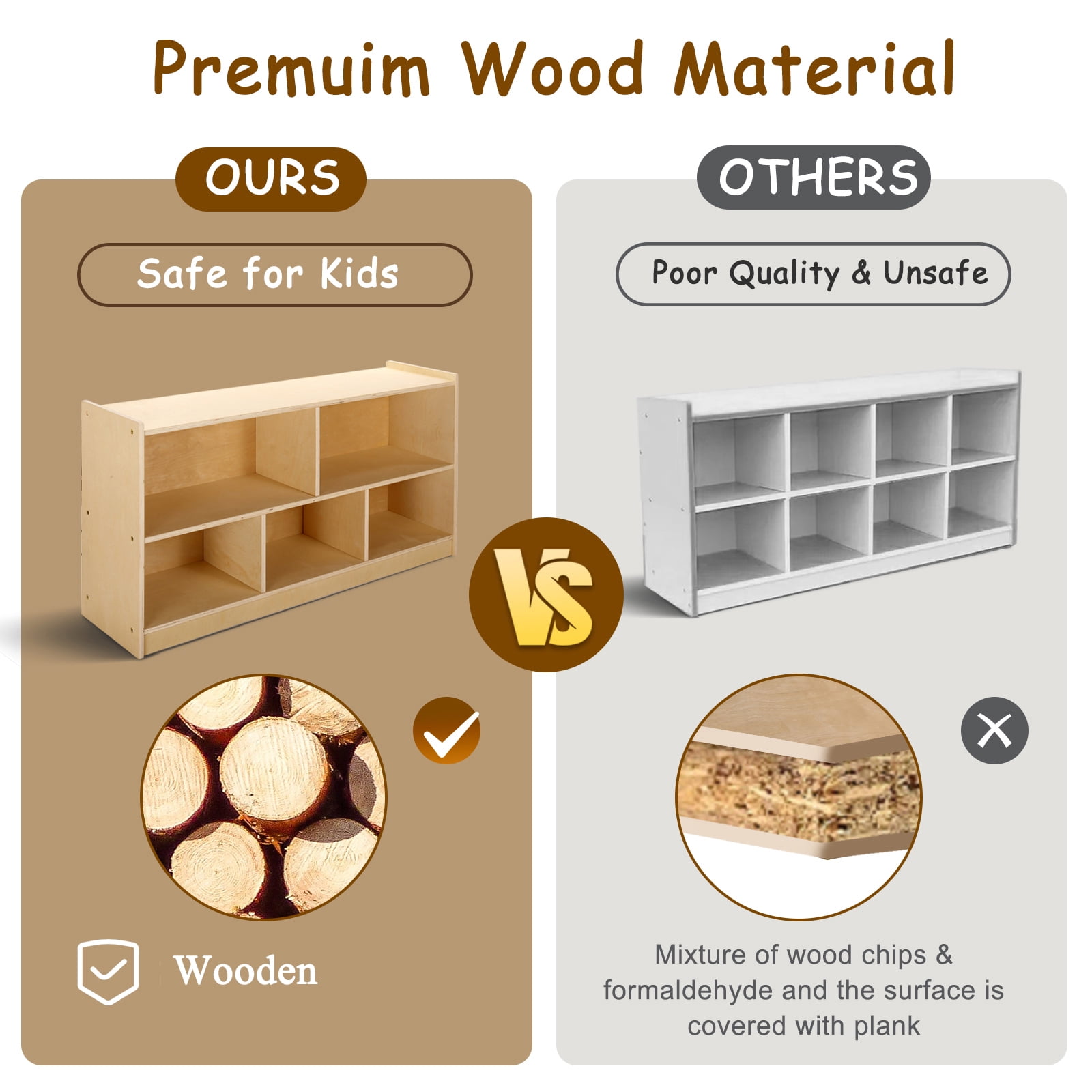 Sweet Time Wooden Storage Cabinet Montessori Bookshelf 5-Section Kids Toy Organizer Book Shelf Living Rooms Nursery Classroom