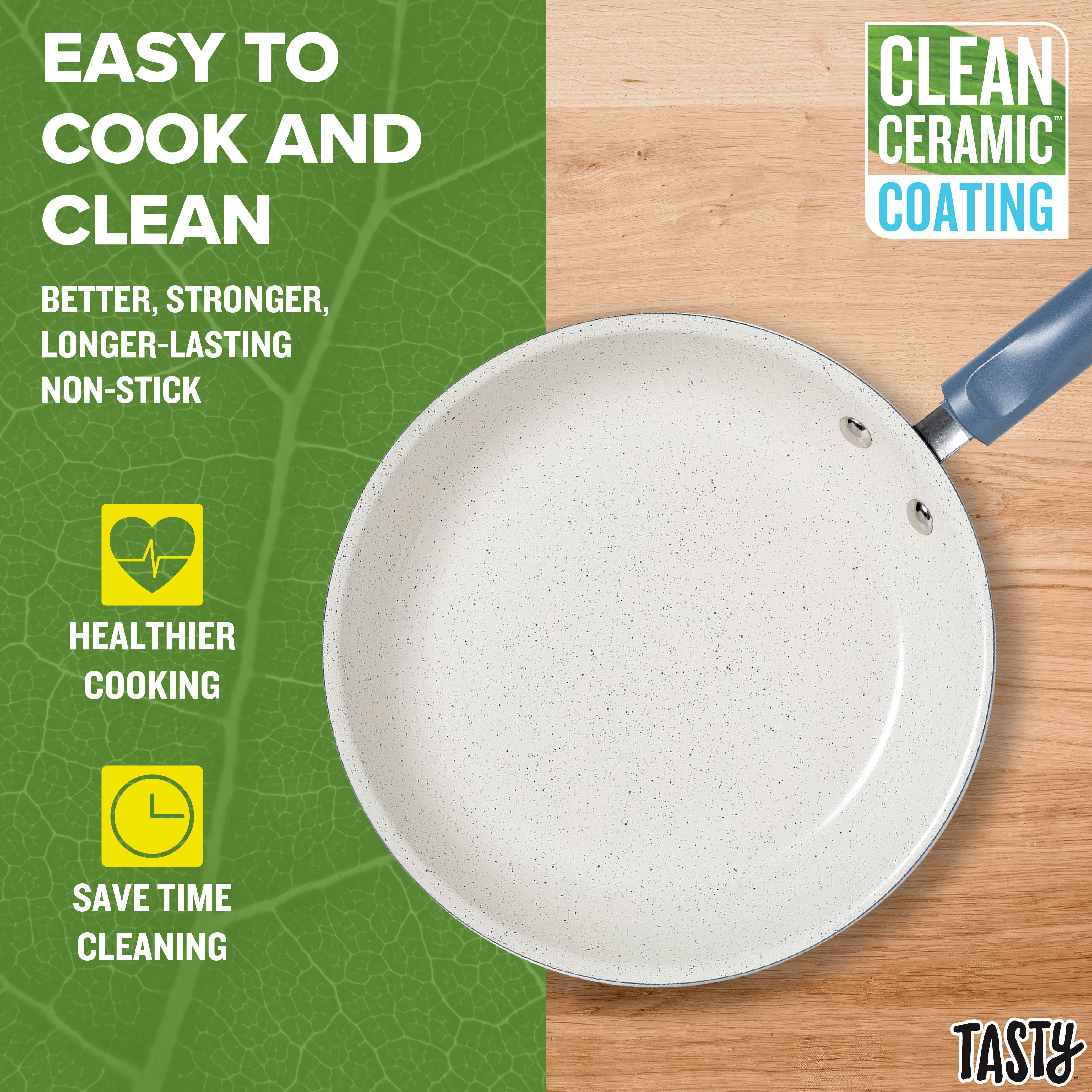 $117.30Original price was: $117.30.$103.20Current price is: $103.20.The Tasty Clean Ceramic non-stick 24 piece cookware set that includes everything you need and then some. The better, stronger, longer-lasting reinforced speckled Clean Ceramic non-stick coating allows food to easily slide out of the pan. Our speckled non-stick coating is made without PFAS, PFOA, PTFE and PFOS to bring you the same Tasty cookware you love??? elevated for healthy cooking. The heavy duty construction on the cookware set heats quickly and evenly so you can cook with ease. The wok and cookware with stainless steel base are suitable for all cooking surfaces, including induction, electric, gas and glass.