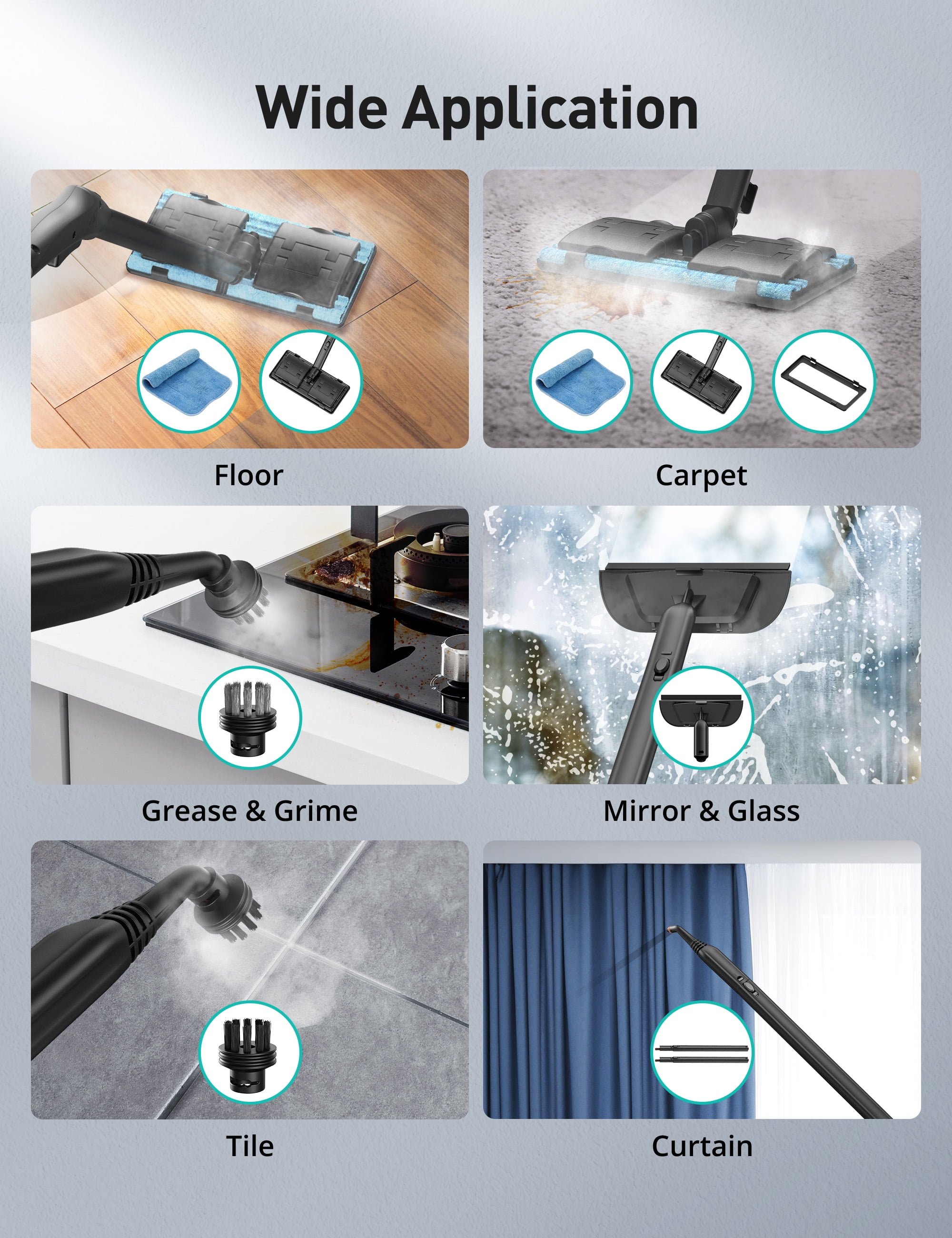 TaoTronics Steam Cleaner, Portable Multipurpose Steam Cleaner for Car, with 21 Accessories, 5 Mins Heating with 1.5L Tank, for Carpet and Upholstery