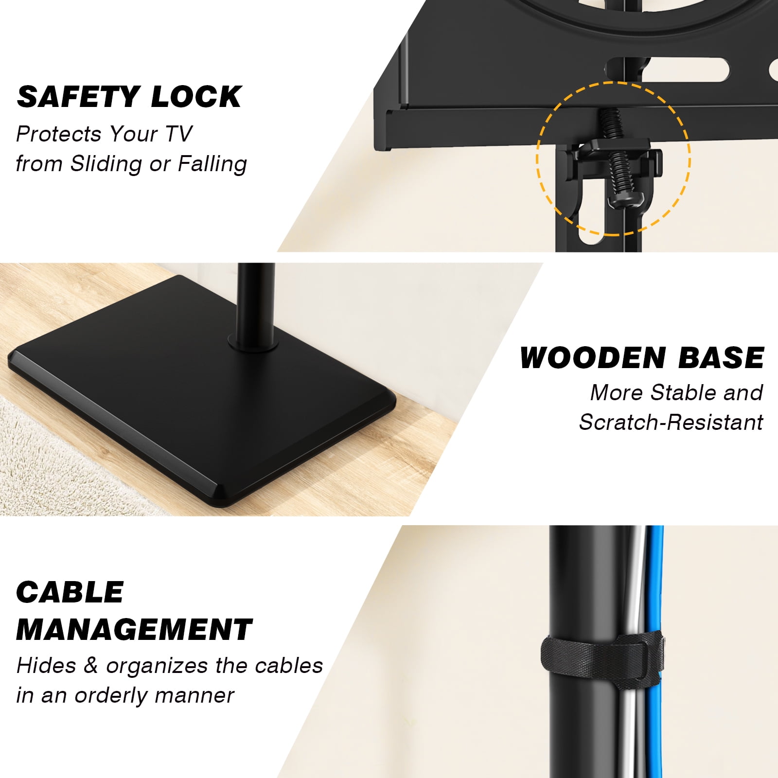 TAVR Furniture Universal Floor TV Stand with for 32″-60″ TVs up to 88 lbs, Modern Black TV Stands with Swivel Mount for Bedroom