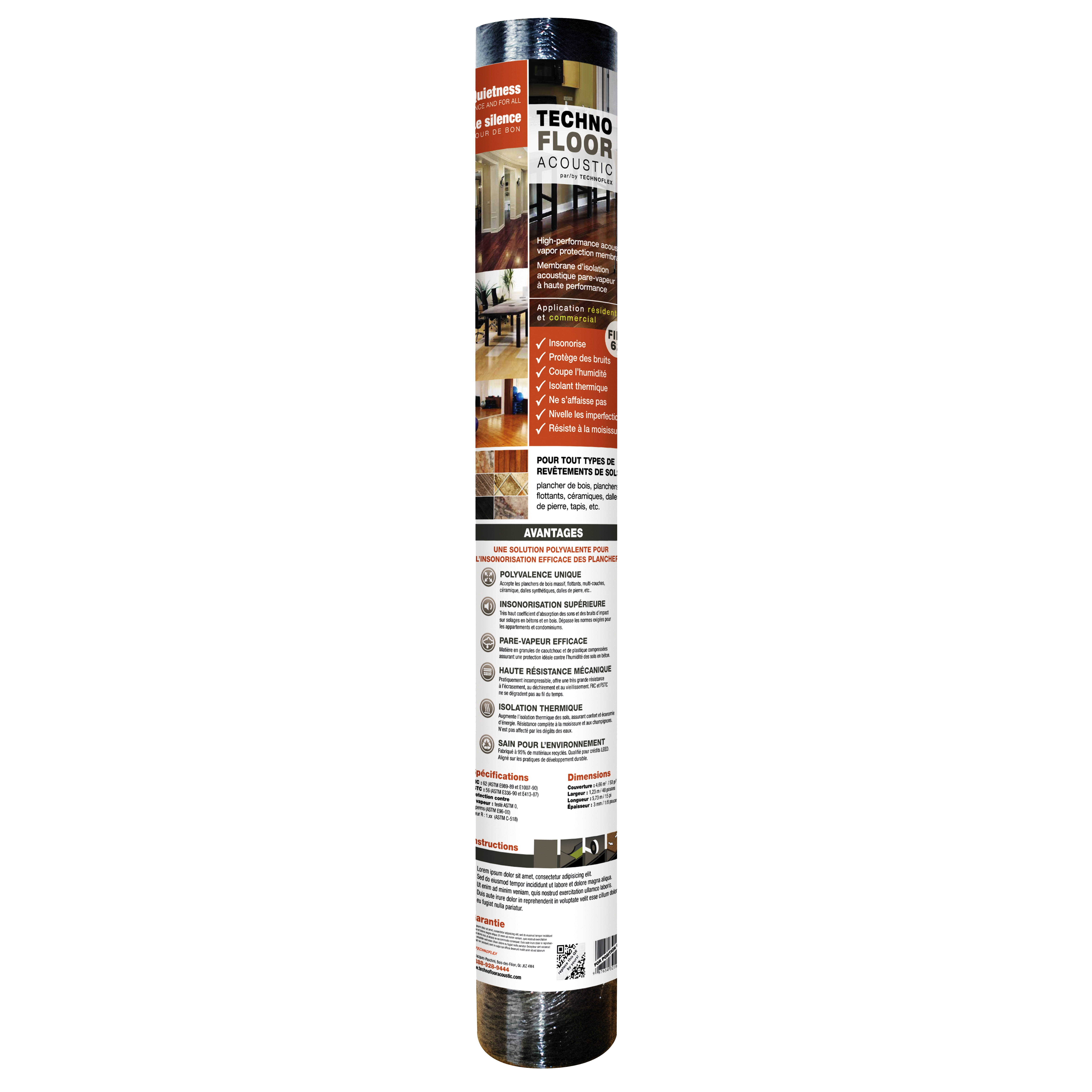 $50.97TechnoFloor Acoustic Underlayment provides superior soundproofing for any type of floor covering – FIIC 68. It’s soundproofing technology absorbs sound and impact noise, even exceeding required standards. Made of 100% recycled rubber particles, it provides protection against moisture on concrete floors.