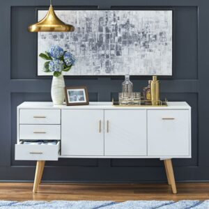 TMS Maura Mid-Century Modern 56” Wide Dining Room Sideboard Buffet, White Finish