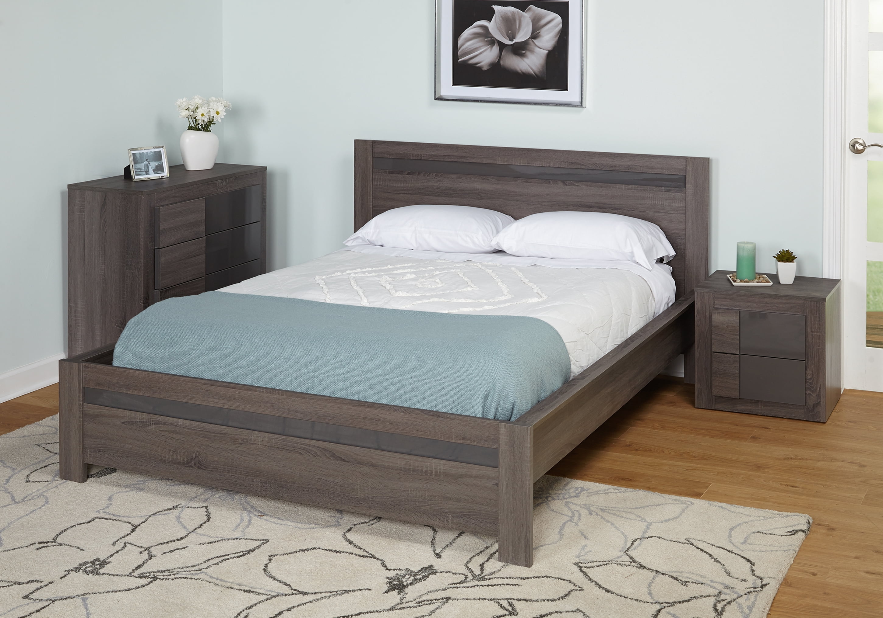 $118.48Sleek and versatile, the Maya four drawer chest features Stark asymmetrical lines and a sleek grey finish. Fashionably crafted with laminated particle board in a Dark Sonoma Oak finish. The Maya Four Drawer Chest is a throwback to the bold designs. Four large spacious drawers offer ample wardrobe space. Perfect to store in your clothes or accessories. Blends in well with any home décor or with any of your existing bed accessories