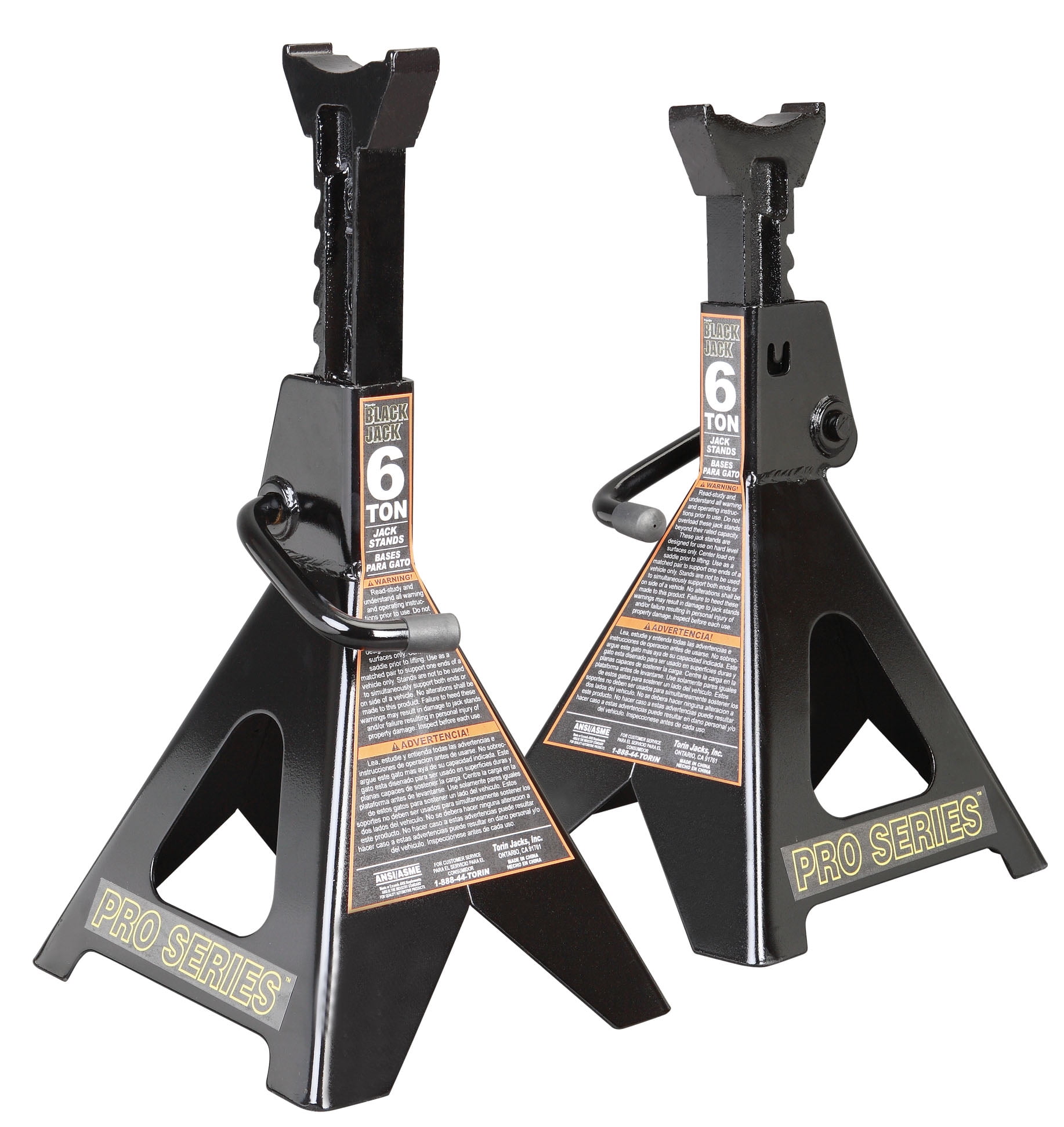 $67.18Black Jack 6 Ton Jack Stands Pair. Ratchet Type. Color Boxe Package. Lifting Range: 15-3/8″ to 23-13/16″ The Torin Jacks 6-Ton Jack Stand Pair is a must-have accessory for all automobile owners. It includes two heavy-duty steel jacks with a load capacity of 12000 lbs, making them suitable for emergency tire changes, repairs and more. These Torin Jack stands are equipped with solid handles and self-locking ratchets so they can be operated conveniently and safely. The double-locking pawl and tooth design provides extra protection, while the ductile ratchet bar offers strength and durability. Both steel jack stands offer lightweight mobility and are compact enough to fit in your trunk easily, alongside other roadside equipment. These devices are made of heavy-duty steel and meet ANSI/ASME standards for engineering safety. This pair allows you to boost up your car safely for tire fixes and replacements. They are useful for any repairs that require easy access to the underside of your vehicle.This Torin Jacks 6-Ton Jack Stand Pair provides you with two strong, durable tools in one convenient set.