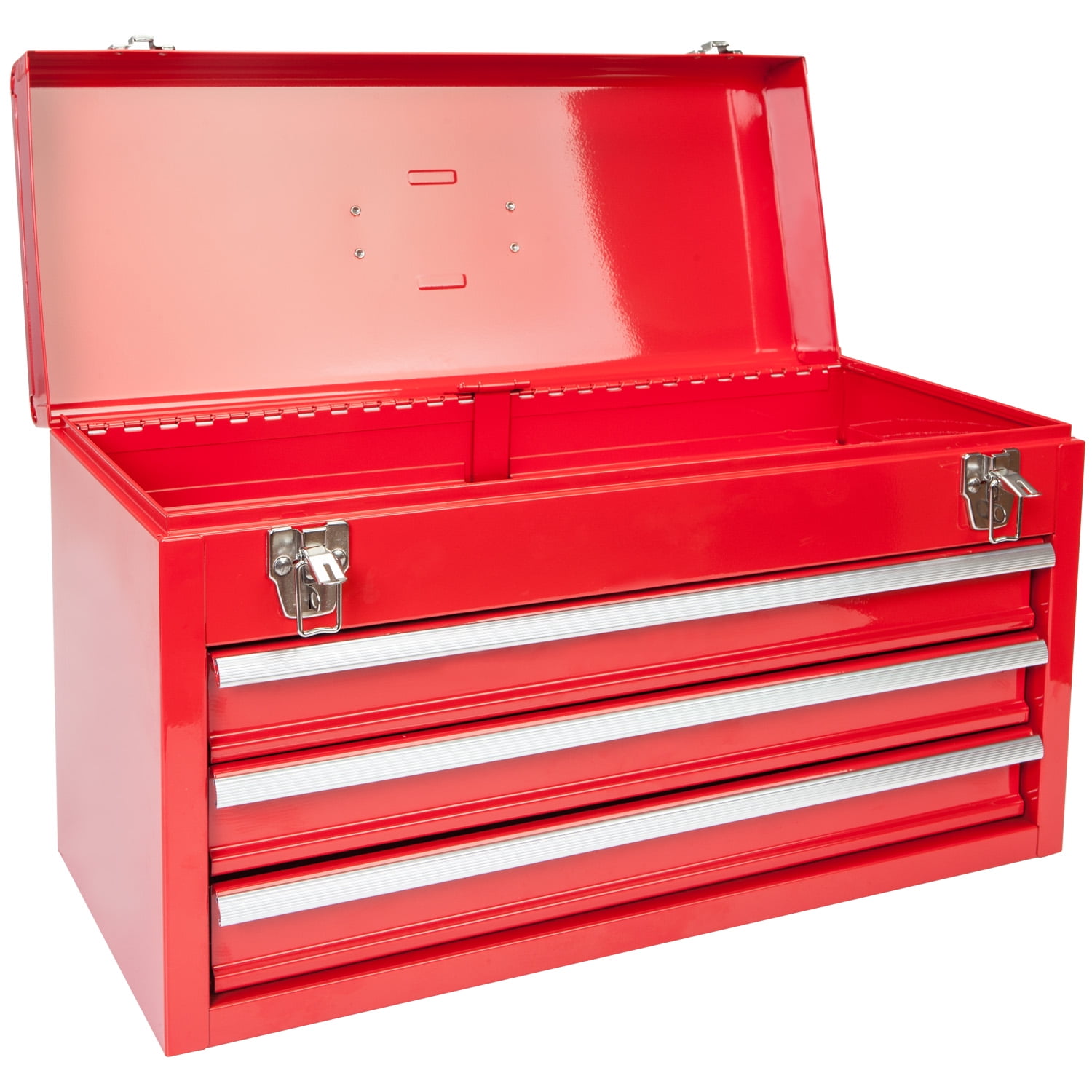 $70.96This 20″ portable 3 Drawer red steel tool box is made of thick steel,with powder coat red paint finish,it’s a heavy duty tool box to storage different tools and comfortable handle to carry easily.Combination of drawer and top box brings you reasonable ideas for classification tools.Strong function of this box is suitable for many work places.