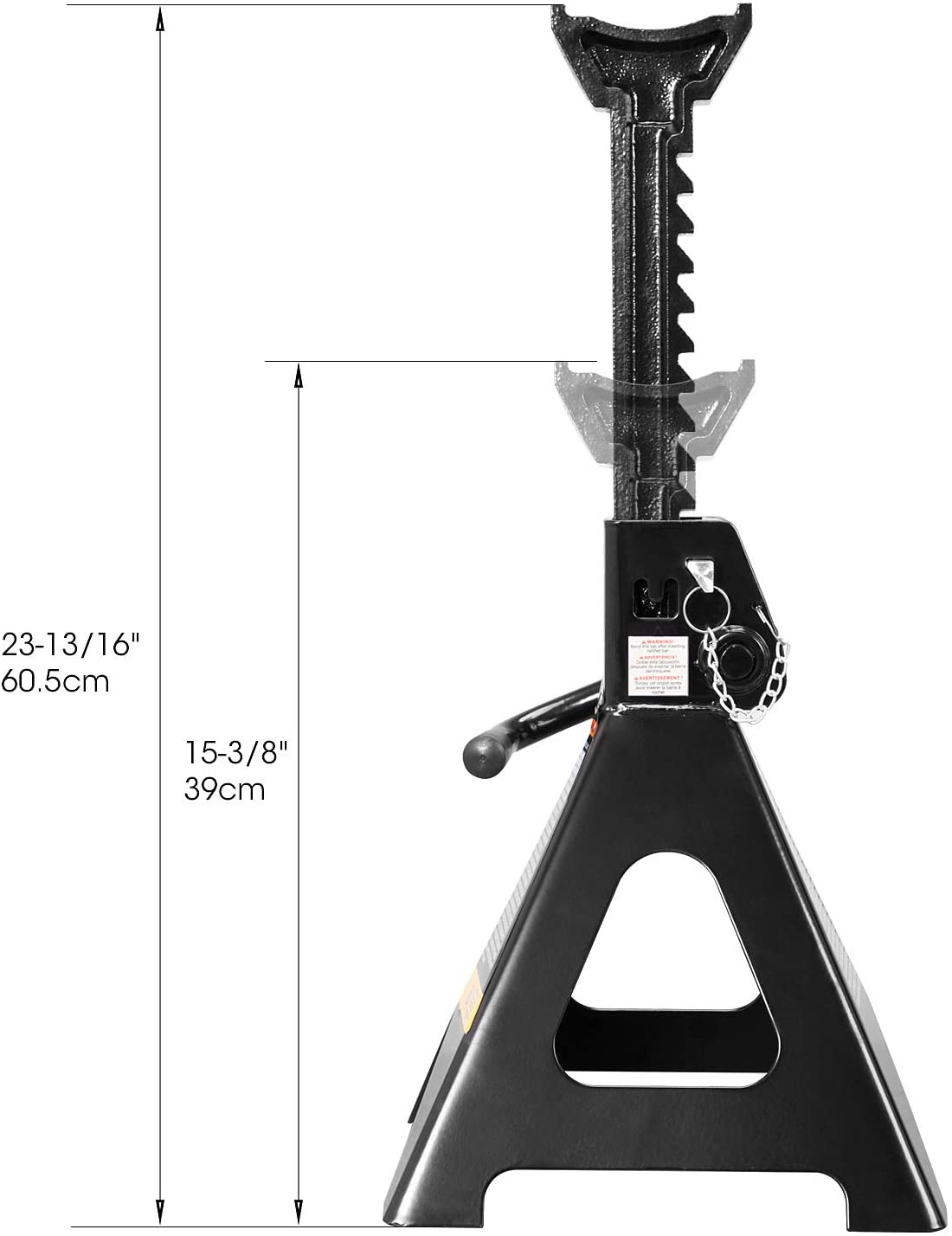 $54.46Torin BIG RED DT46002A 6 ton double locking 1 pair steel jack stands are a must for you in any garage .It can help you weigh things up to 6 ton,in other words,the maximum load capacity of this product is 12,000 pounds. Features a lifting range of 15-3/8″ to 23-13/16″.Plus,It’s constructed of high-grade steel with a welded frame for quality and long term durability.Therefore,it is suitable for handling a wide range of vehicles including small cars, jeeps, ATV’s, UTV’s, and more.