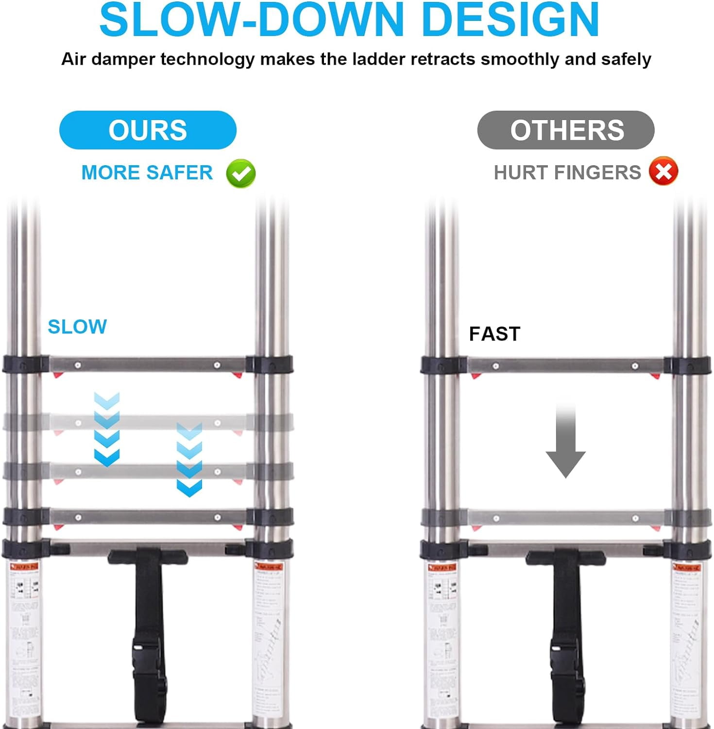 Topwire Telescoping Ladder 12.5FT, Extension Step Ladder One Button Retraction,Stainless Steel Collapsible Ladder Slow Down Design for Home RV Loft,330 lbs Max Capacity