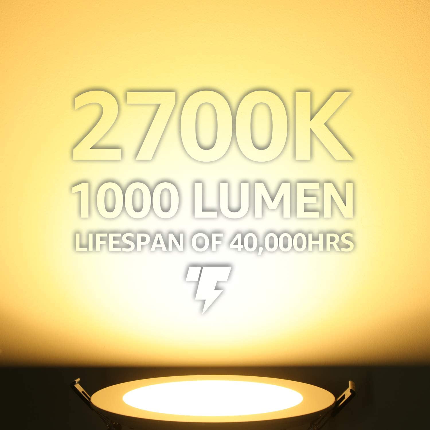 $42.13Energy SaverThis ETL & Energy Star certified light only needs 13.5W to match the output of a 75W incandescent light, saving you up to $1082.4 per set over its long 40,000hrs lifespan. It also has a scratch-resistant frosted lens that prevents glare. Ultra-Thin LightingThis LED ultra-thin downlight only needs 2 inches of ceiling space, perfect for ceilings that can’t fit a housing can. The metal springs clips firmly hold the light for easier install and lasting service. Reliable DesignThe unique waterproof male and female connectors make it great for wet locations. The IC rating lets this light be in contact with insulation so you don’t need to worry about it overheating and causing a fire. Widely UsedWith smooth 100%-10% dimming and compatible with most dimmers on the market, you can easily set the mood as you like. The 110⁰ beam angle and CRI80+ let this light be used in garages, kitchens, and even bathrooms. Trusted QualityThis light fits new construction, remodels, and retrofit installations. The aluminum light body extends the lifespan to 40,000hrs. Compatible DimmersLUTRON: SCL-153P, S-600-WH, MACL-153M-WH, DVWCL-153PH, DV-600P-WH, TBL03, DV-103P-WH, DVCL-153P-WH, DVELV-300P-WH, MRF2-6ND-120-WH, MRF2-6ELV-120-WH LEVITON: VTELV-600M-W-WH, NLV-600-WH, NTLV-600-WH, NT-600, NTELV-600-WH, AY-600-WH, SELV-300P, 6681, IPI06-1L, 6633-P, IPL06-12AL Specifications:Wattage: 13.5W Voltage: 120V Equivalent: 75W Luminous flux: 1000lm CRI>80 Lifespan: 40,000hrs Beam angle: 110 degree CCT: 2700K soft white Dimmable: Yes Dimming range: 10%-100% Working temp: -13 Fahrenheit-113 Fahrenheit Waterproof rating: Wet location Material: Die-casted aluminum