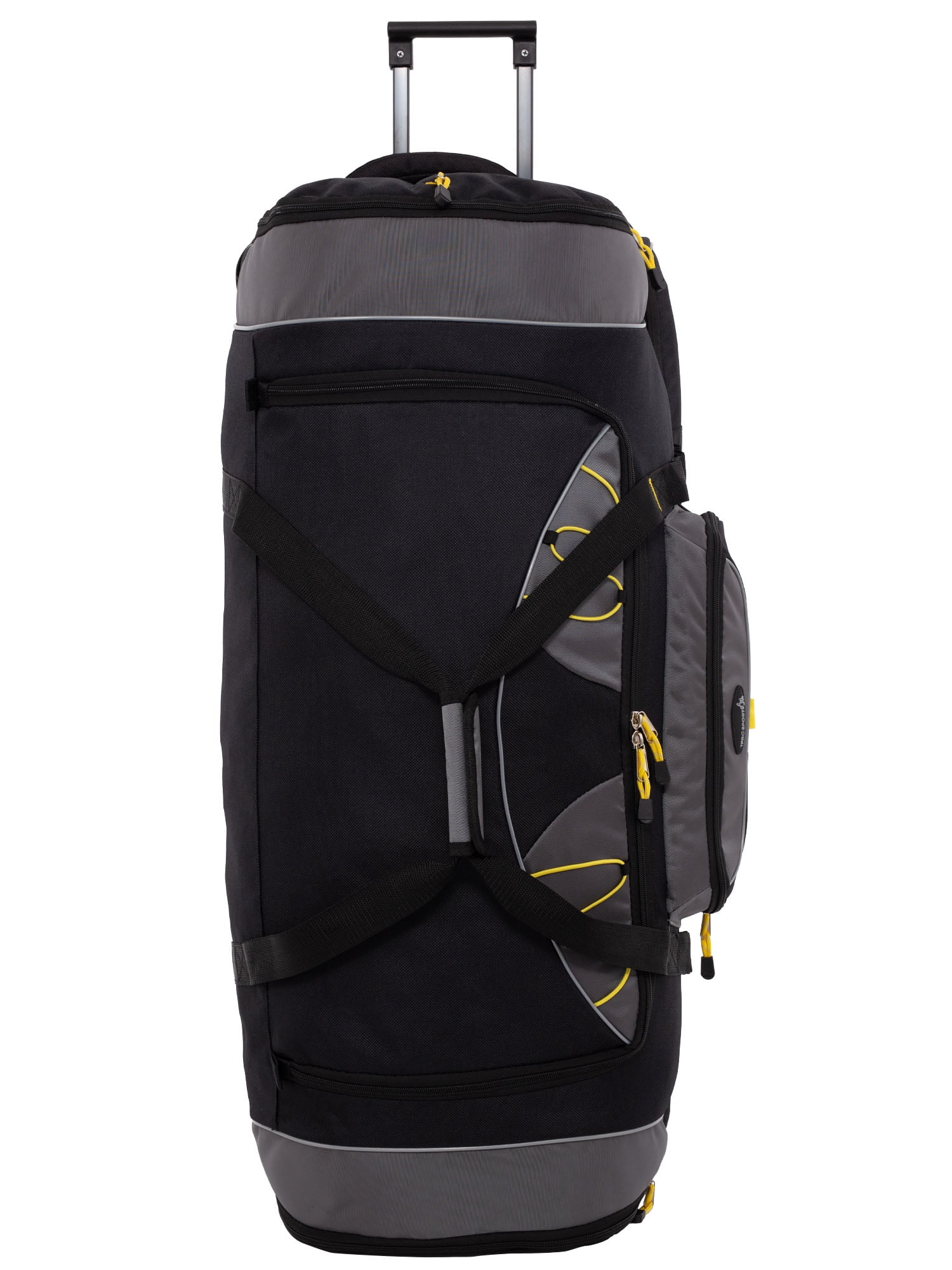 $38.70This top-rated Jumbo 36″ 2-Section Rolling Duffel Bag with Blade Wheels in Black offers enormous packing capacity for the busy traveler. A large main pocket, rigid bottom section and extra side pockets supply plenty of space for small items and accessories. This 2-section rolling duffel bag features a telescopic handle and large in-line skate wheels for easy maneuverability. This travel bag is great for college dorm students, cross-country vacations and jet-set globe-trotters. Made of rich 900 denier polyester for durability. Note: Oversized for airline check-in. 36″ x 15″ x 16″. Weighs 6.6 lbs. Ideal for adult travel.