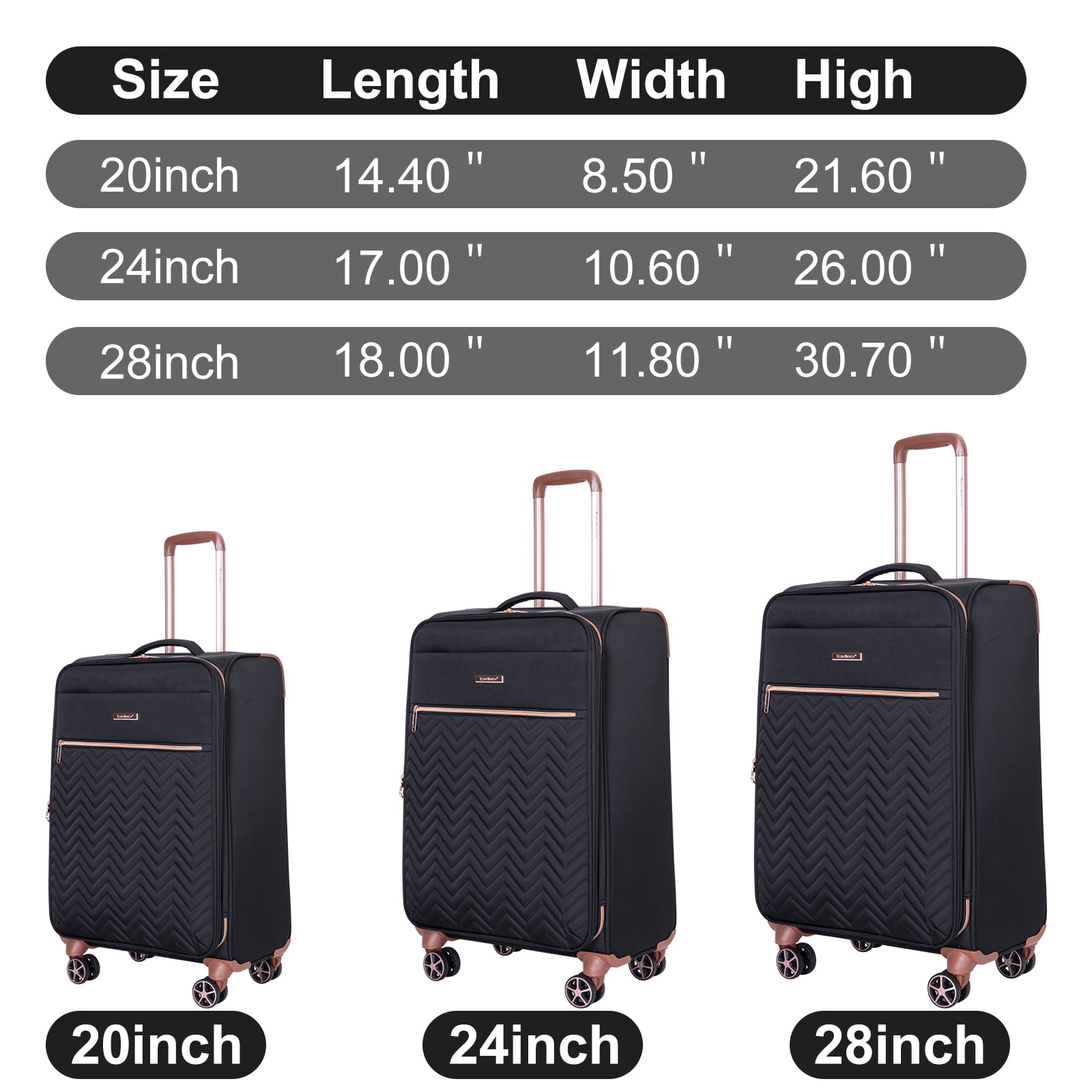 Travelhouse 3 Piece Luggage Set Softside Expandable Lightweight Suitcase with Spinner Wheels.(Black)