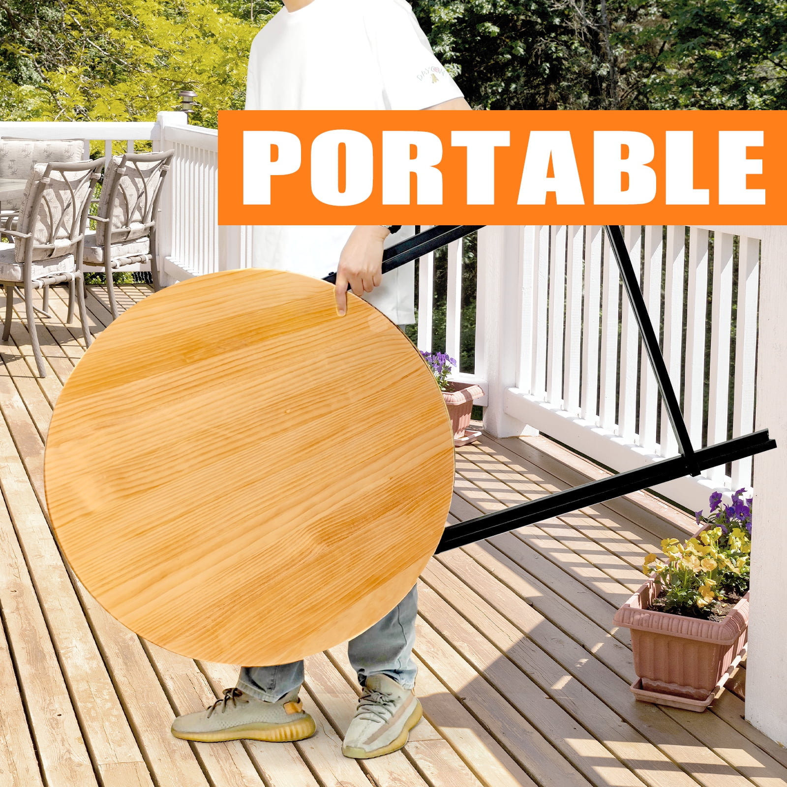Bar High Folding Table 31″ Round Table 45″ Height Dayooh Outdoor Bar Table Solid Wood Table Log