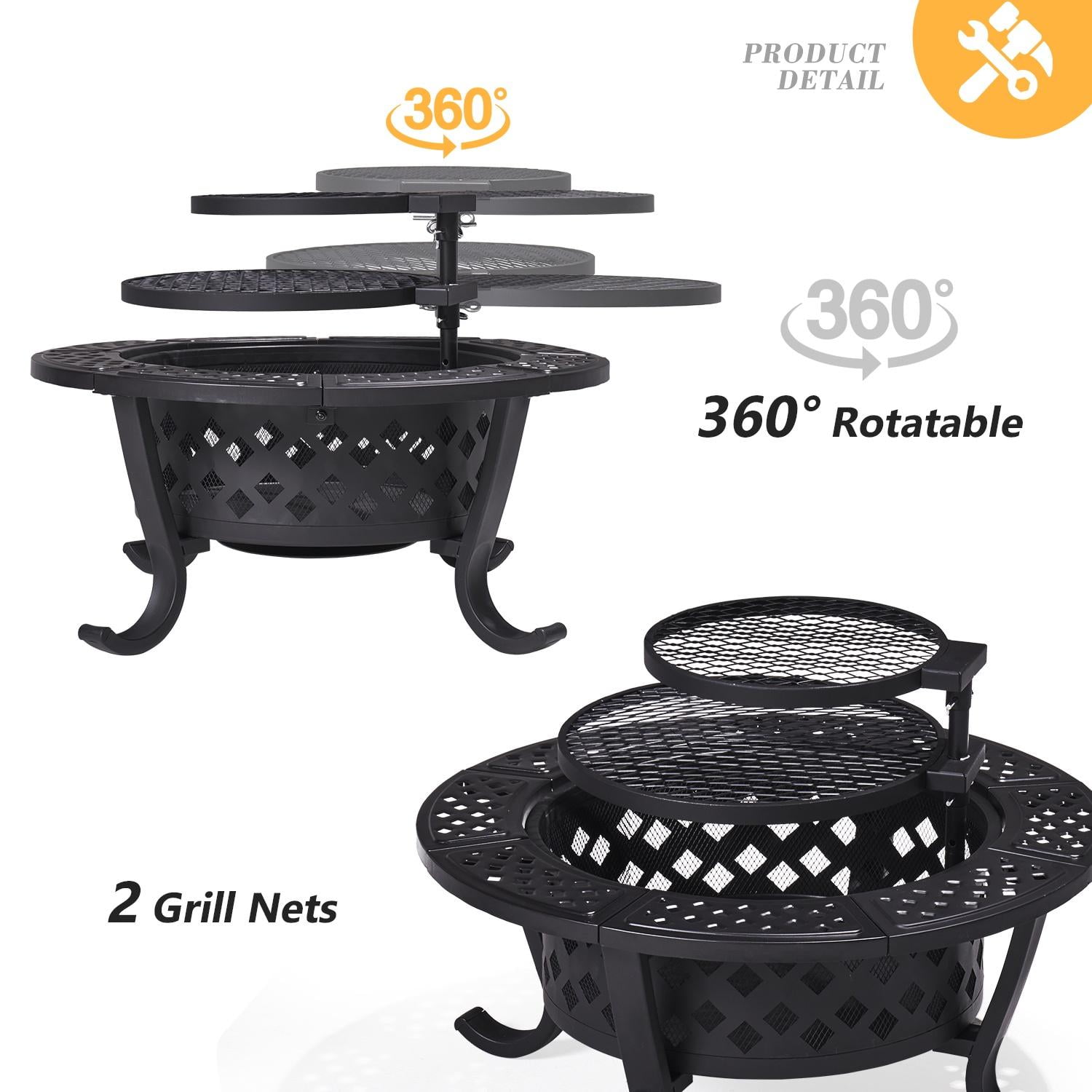 $70.51This wood-burning pit can withstand 752 ° F to 1112 ° F. It features a flexible cooking grille that can be adjusted horizontally and vertically, adding to the enjoyment of grilling. Two layers of grates can hold more food, so the marshmallow food won’t get burned. The 7.9-inch deep pit has no curvature inside, making it more suitable for firewood, multiple diamond patterns along the sides increase ventilation, and built-in grids reduce ash and charcoal drop. This is a great product from which friends and loved ones can find grilling and heating fun.