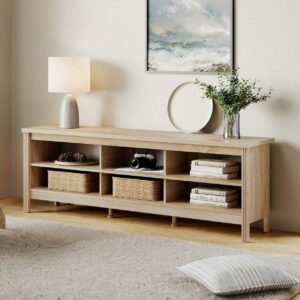 TV Stand for 75 inch TV with 6 Storages for Living Room, Oak TV Media Console for Bedroom, 70 inch