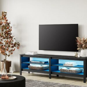 TV Stand for 85 inches Flat Screen, LED Wood Media Console Storage Cabinet Entertainment Center with 6 Open Shelves, 95 inches, Black