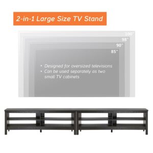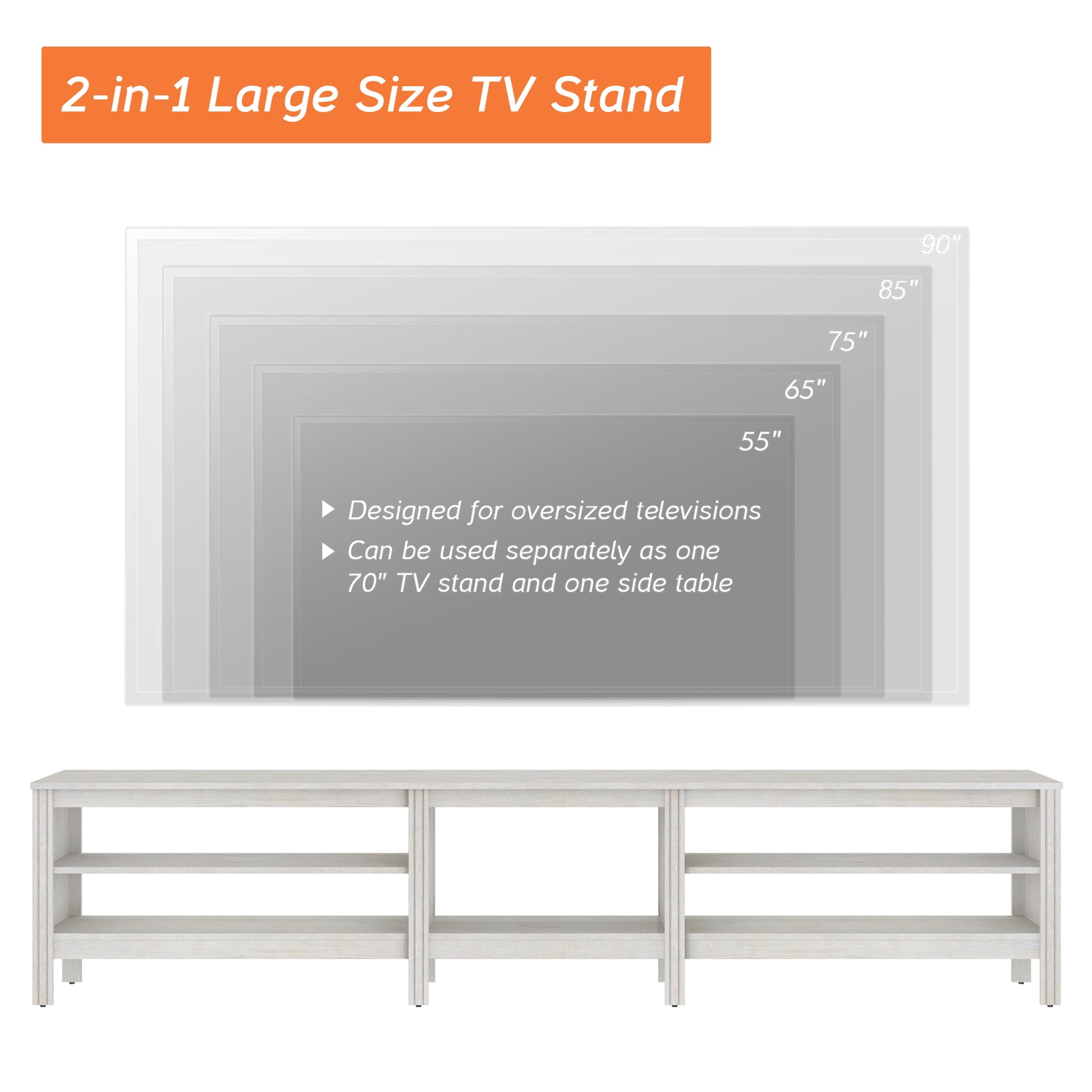 $134.38Note:This TV cabinet is sent in two packages,so you may receive them at different times.Designed with wide tabletop and 6 Storages to meet your storage requirements.Fits most 75 80 85 90 95 100 Inch TV screens.And it also can be used separately as 1 TV console which fit for 75 inch TV and 1end table .Dimensions: 94.5″ L x 15.6” W x 23.6” H. Weight limit of top board is 270 lbs.Note:This TV cabinet is sent in two packages,so you may receive them at different times.Designed with wide tabletop and 6 Storages to meet your storage requirements.Fits most 75 80 85 90 95 100 Inch TV screens.And it also can be used separately as 1 TV console which fit for 75 inch TV and 1end table .Dimensions: 94.5″ L x 15.6” W x 23.6” H. Weight limit of top board is 270 lbs.