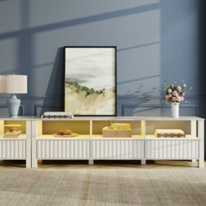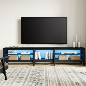 TV Stand with Warm White LED Lights and Open Storage Shelves for 75 Inch TV, Black