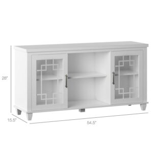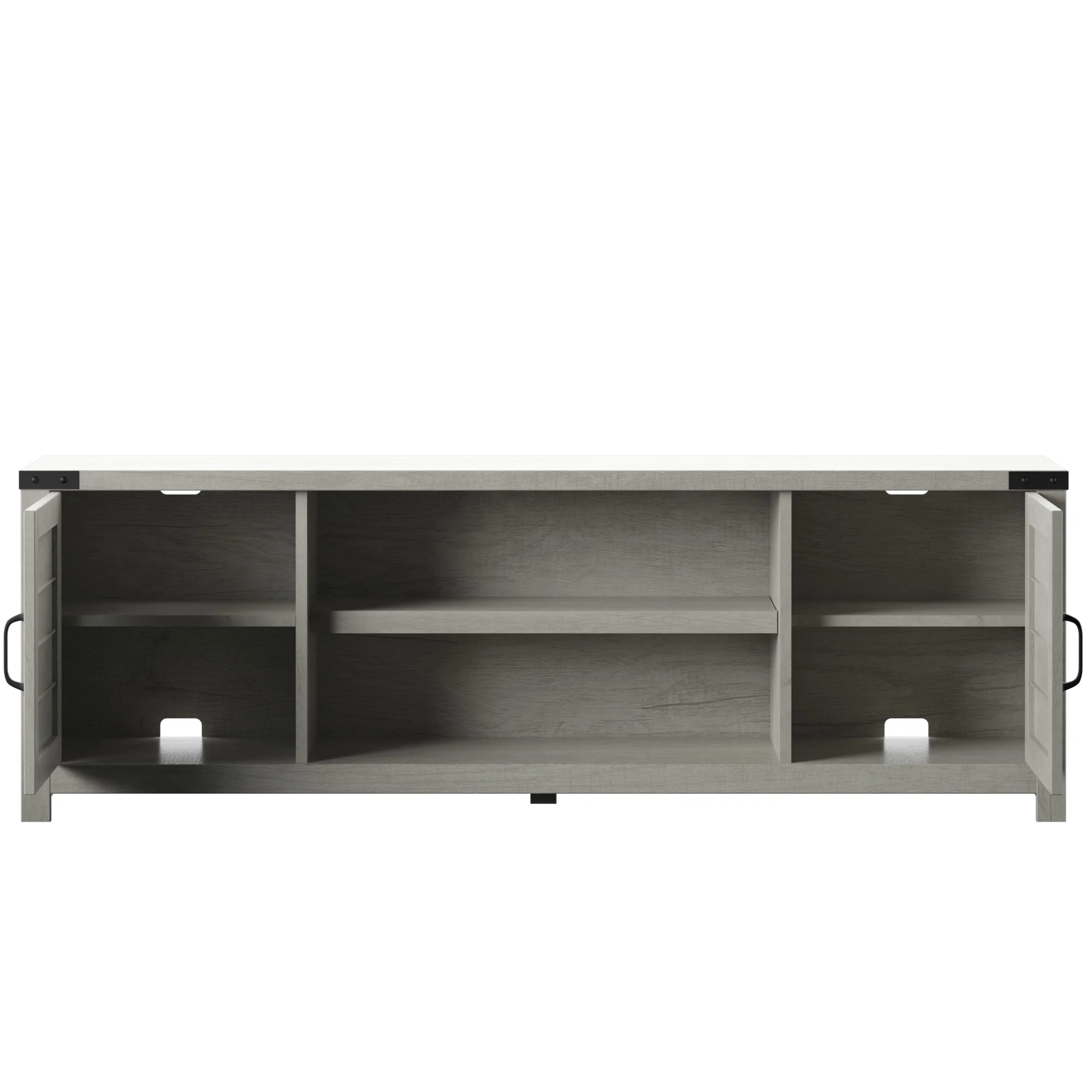 $193.49Give your entertainment area a new look with this farmhouse-inspired TV stand. With plank doors and accent hinges, this stand makes for a comforting, relaxed atmosphere. There’s also plenty of room for all your entertaining must-haves like gaming consoles, wireless routers, and more. The two side cabinets each come with an adjustable shelf and the center compartment also has an adjustable shelf for extra storage or to display home decor. Plus, the back panel cutouts help you keep all your cords and cables organized, no matter what.