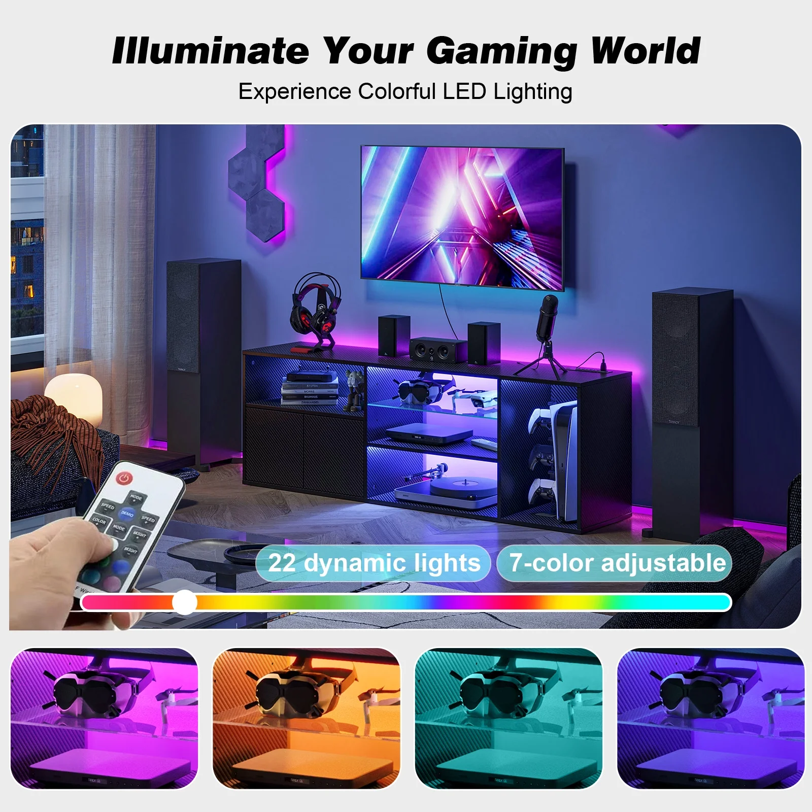 TV Stand for Living Room, Entertainment Center for TVs up to 65 inch, TV Console Table with Adjustable Shelves, Carbon fiber