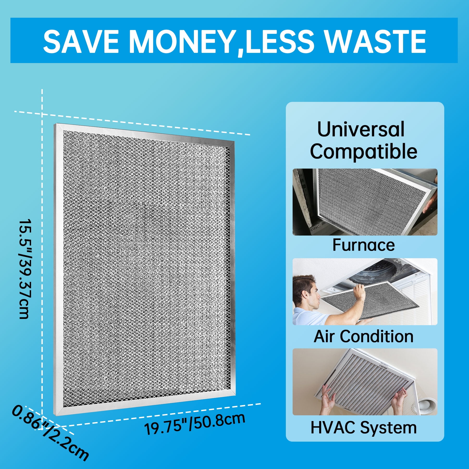 $34.39[Waste Less And Friendly] The UBeesize air filter is reusable, which means you won’t have to constantly replace it like disposable filters. This not only saves you money, but it also reduces waste and helps protect the environment. Plus, its washable design means you won’t have to worry about disposing of it properly. [Versatile Compatibility] The UBeesize air filter is compatible with a wide range of furnace, HVAC, and AC systems. This means you won’t have to worry about finding a specific filter for your system. Plus, its universal design makes it easy to install and maintain, no matter what type of system you have. Q:How often do you clean it? A:Every 3 months,wear gloves to change it ,wash it with water and detergent,shake of excess water let it dry before reinstalling Q:Will it rust over time? No,this washable air filter was made of rustproof Aluminum and polyamide fiber,no worry for the rust Q:Can you filter dust from the air? A:Of course,it can absorb up to 90% of dust, pollen, pet hair, and other particles, making the air in your home cleaner and healthier to breathe. Plus, its MERV 8 level ensures that it meets industry standards for air filtration. Q:Is it complicated to install? A:It’s very easy to install,simply place it in the slot of your furnace, HVAC, or AC system. Q:Does the blue plastic wrap around the edges of the UBeesize forever need to be removed or do I leave it on? A:The blue plastic wrap need removed,this blue plastic wrap is to protect the frame from scratches during transportation.