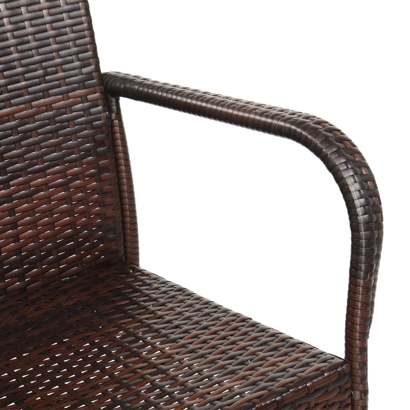 UBesGoo 2-Piece Outdoor Patio Bar Stools Wicker High Bar Chairs, Outdoor Bar Stools, Brown