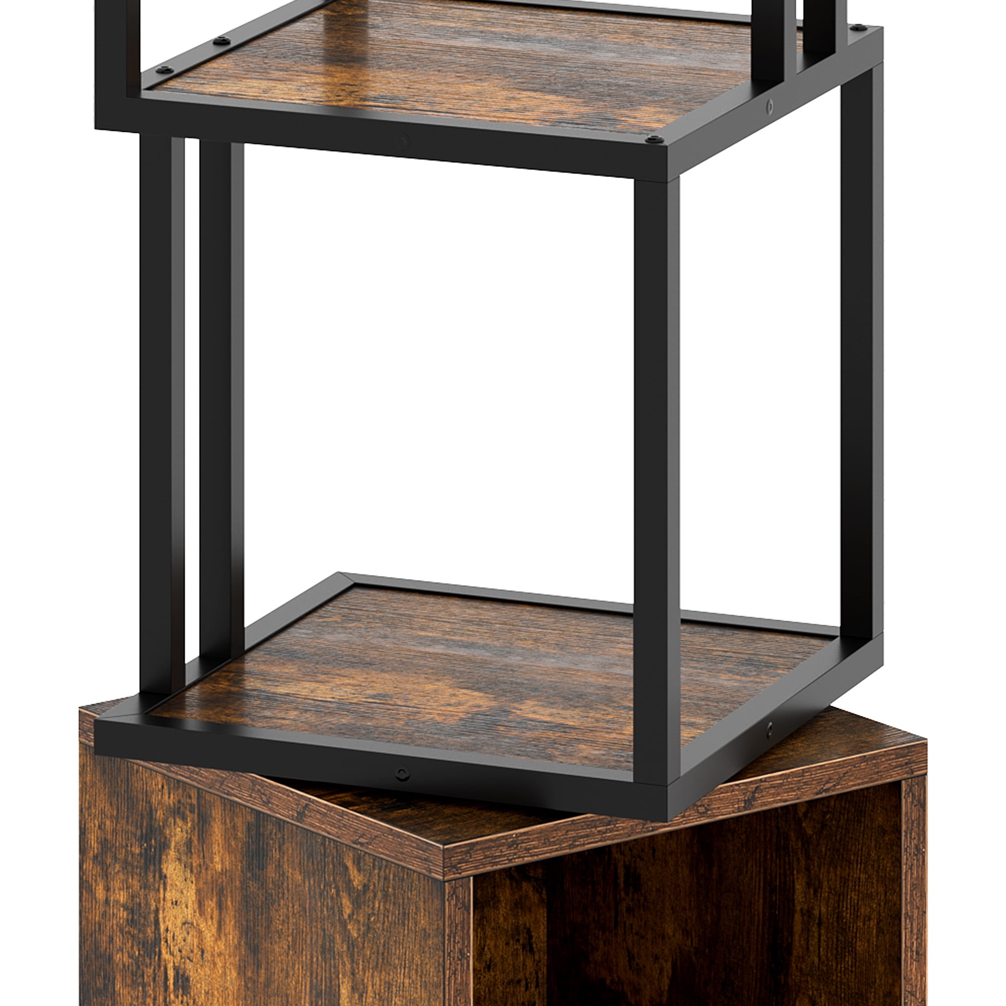 Uforic 4 Tier Bookshelf 360° Rotating Bookcase Open Storage, Small Industrial Bookcase Floor Standing Narrow Shelf for Small Spaces, Living Room, Home Office, Brown