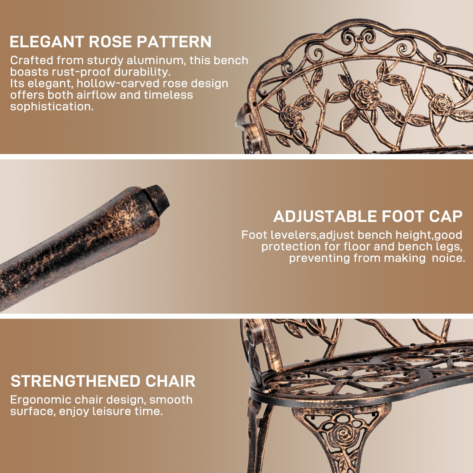 UBesGoo Outdoor Park Patio Bench Leisure Rose Doble Chair, Outdoor Bench for Park, Heavy Duty Metal Bench for Garden, Lawn, Yard, Bronze