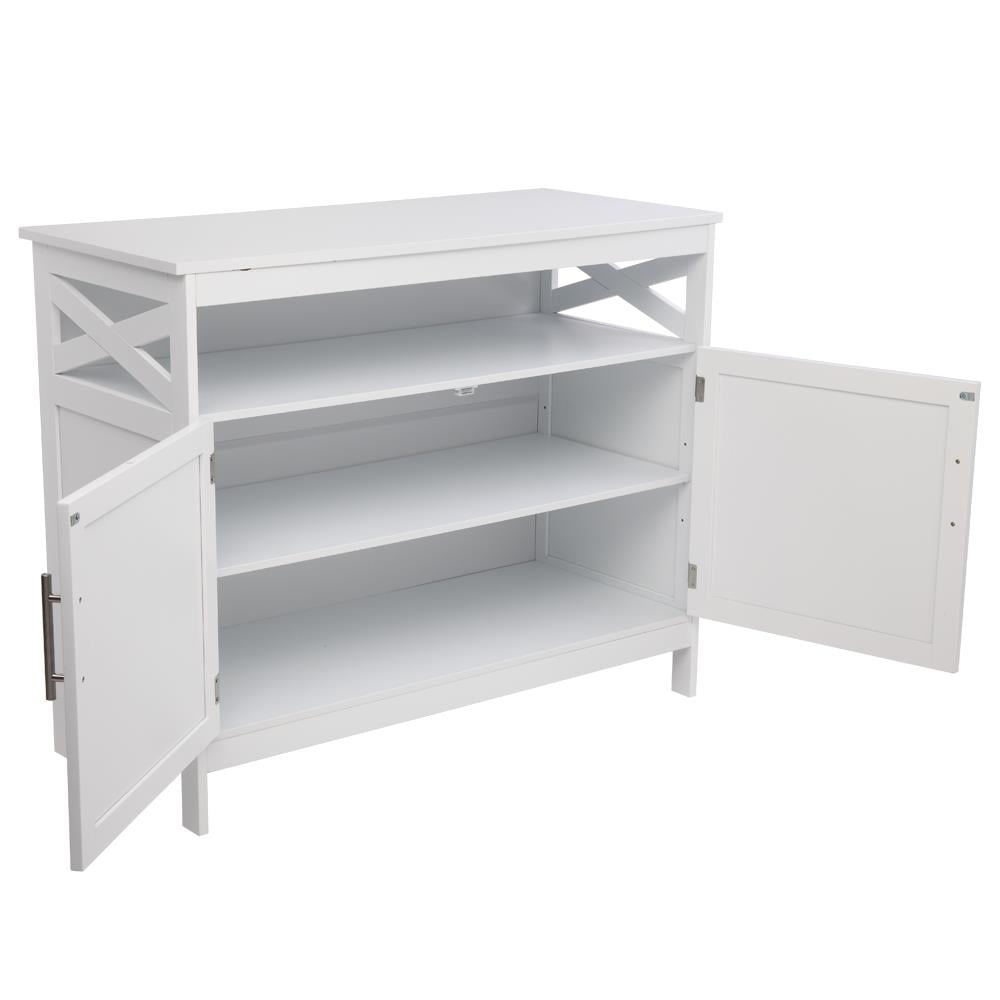 $68.78Introductions: With broad tabletop and large storage compartments, an organized and neat home can be easily come true. Constructed of finished MDF board and heavy-duty legs, the cabinet is steady and reliable for long service time. And you can adjust the position of the middle tier to meet your different storage demands. As a combination of elegance and functionality, the unit is compatible with various decoration styles, and it can perfectly fit your living room, kitchen, bathroom, entrances, etc. Features: Vintage Metal Handle:Designed with 2 vintage metal handles, the cabinet door is easy to open with elegance. And the metal handle is steady and durable, lasting long service time. Magnet Base Door:Designed with magnet base to match the doors, the door can be automatically closed if you forgot to close it after taking something from cabinet. Adjustable Middle Shelf:There are multiple holes so that you can adjust the position of the middle shelf according to your storage needs and individual’s likes. Specifications: Material: P2 MDF board Color: White Weight: 51.8lb Dimensions: (39.4 x 17 x 31.5)” (L x W x H) Package Includes: 1 x Dining Buffet
