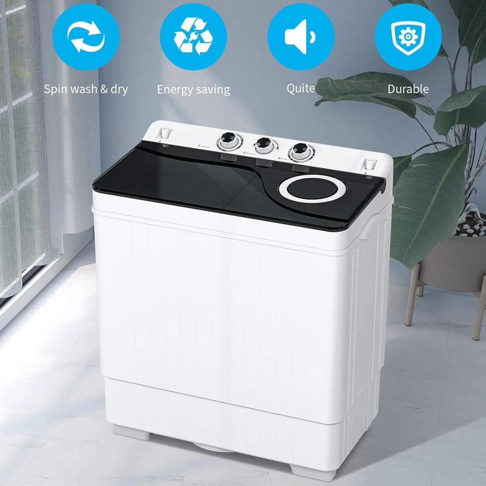 UbesGoo Portable Washing Machine, 26lbs Compact Twin Tub Wash& Combo for Apartment, Dorms,Camping and More, White&Black