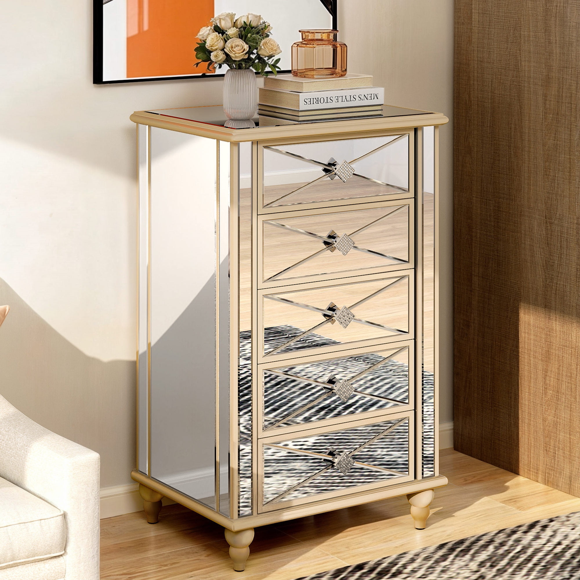 Uforic 5-Drawer Dresser Storage Cabinet with Metal Handle, Chest of Drawers with Mirror Finish, Gold