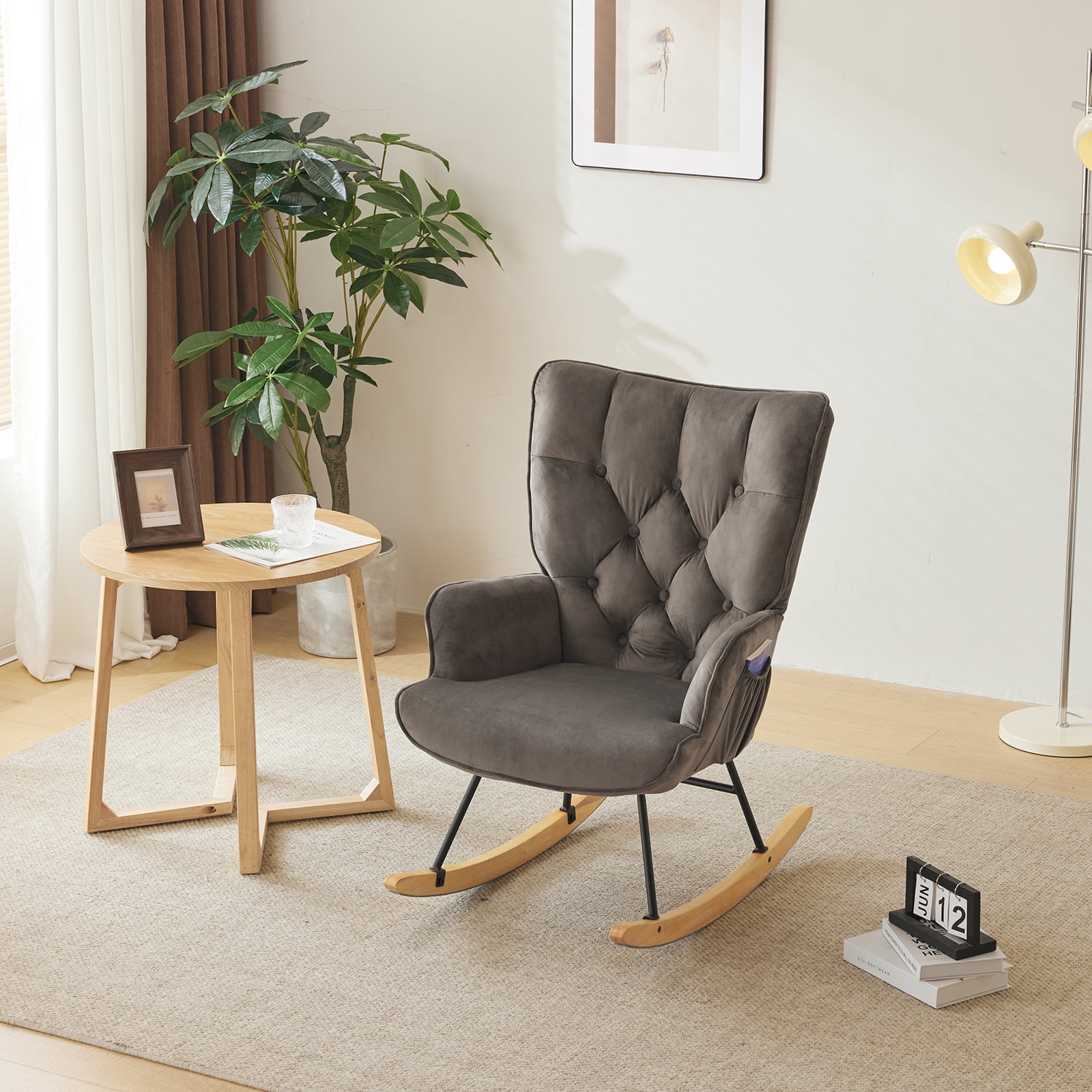 UBesGoo Rocking Accent Chair, Soft Padded Armchair, Comfy Tufted Side Chair with Sturdy Wooden Metal Legs for Living Room Bedroom Gray