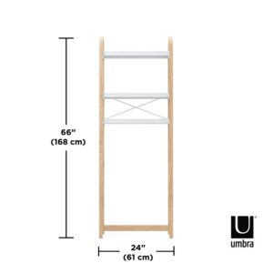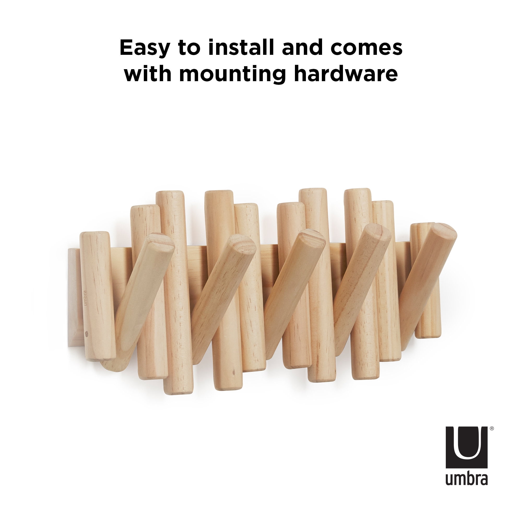 Umbra Picket Wall-Mounted Coat Rack Rail Hook with 5 Retractable Wood Pegs