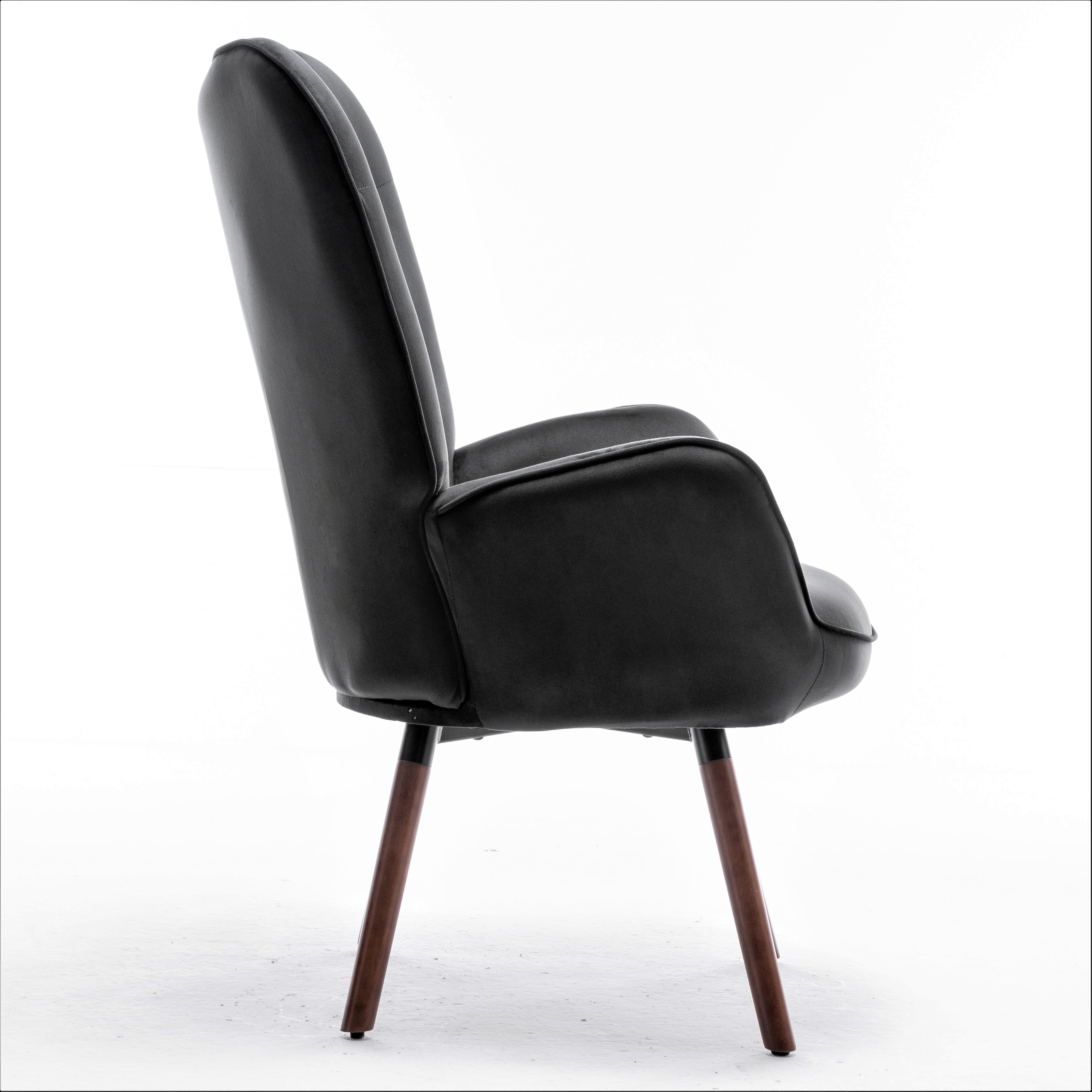 $126.41This accent chair features a traditional wing back design. The modern and chic design armchair, drawing on iconic mid-century silhouettes, this button-tufted armchair is a great option for your space, whether it’s adding extra seating in your living room or bed room or rounding out your home office setup. The frame is made from soild wood, and it rests on four splayed legs with a dark brown finish. This chair is wrapped in foam-filled polyster fabric for a padded touch while you kickback and stream your favorite show. Plus, this piece features flared arms, and a curved back that rounds out its modern look.