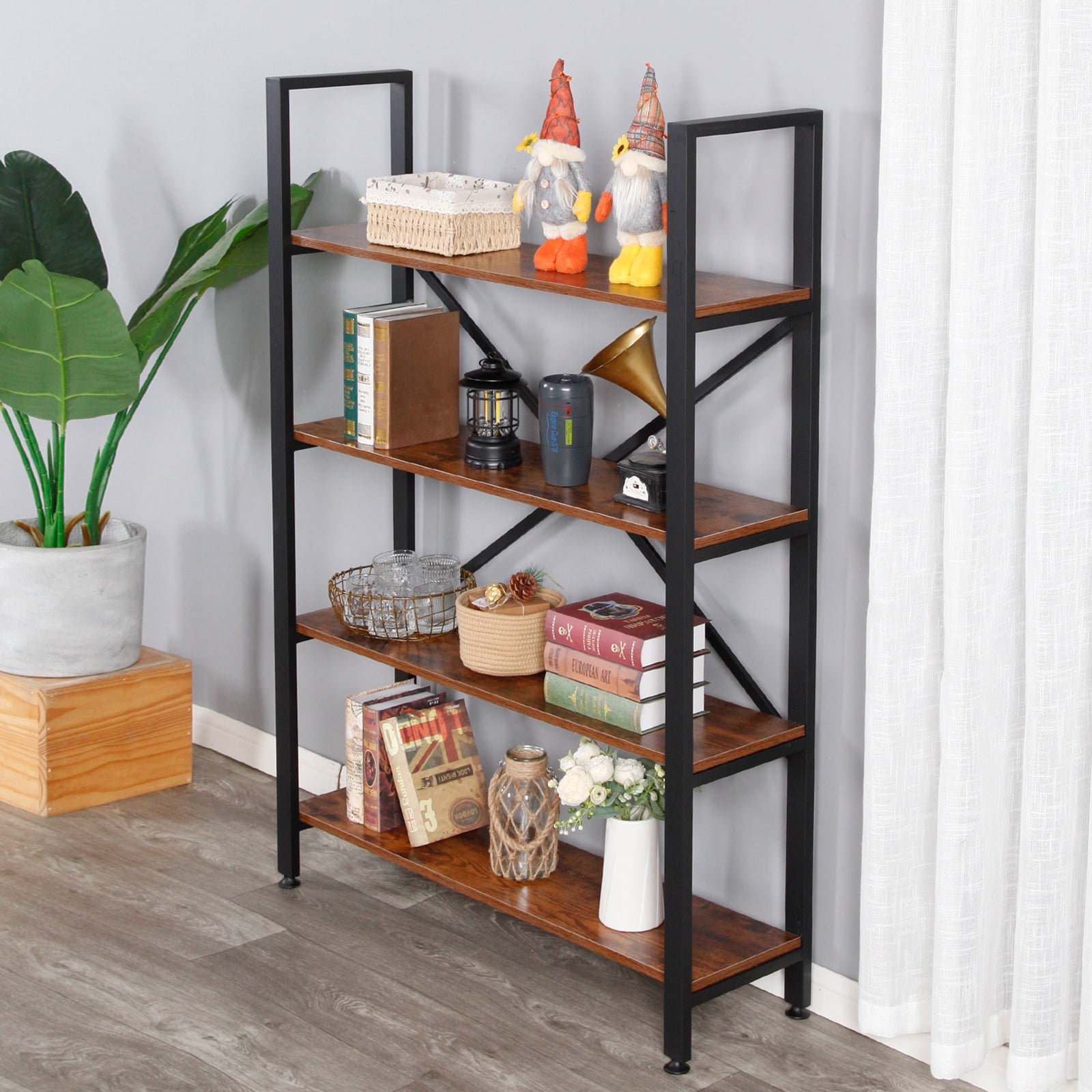 V.ZQLAMZ Rustic Industrial 4-Tier Bookcase, 55” High, Brown Metal Frame Display Rack