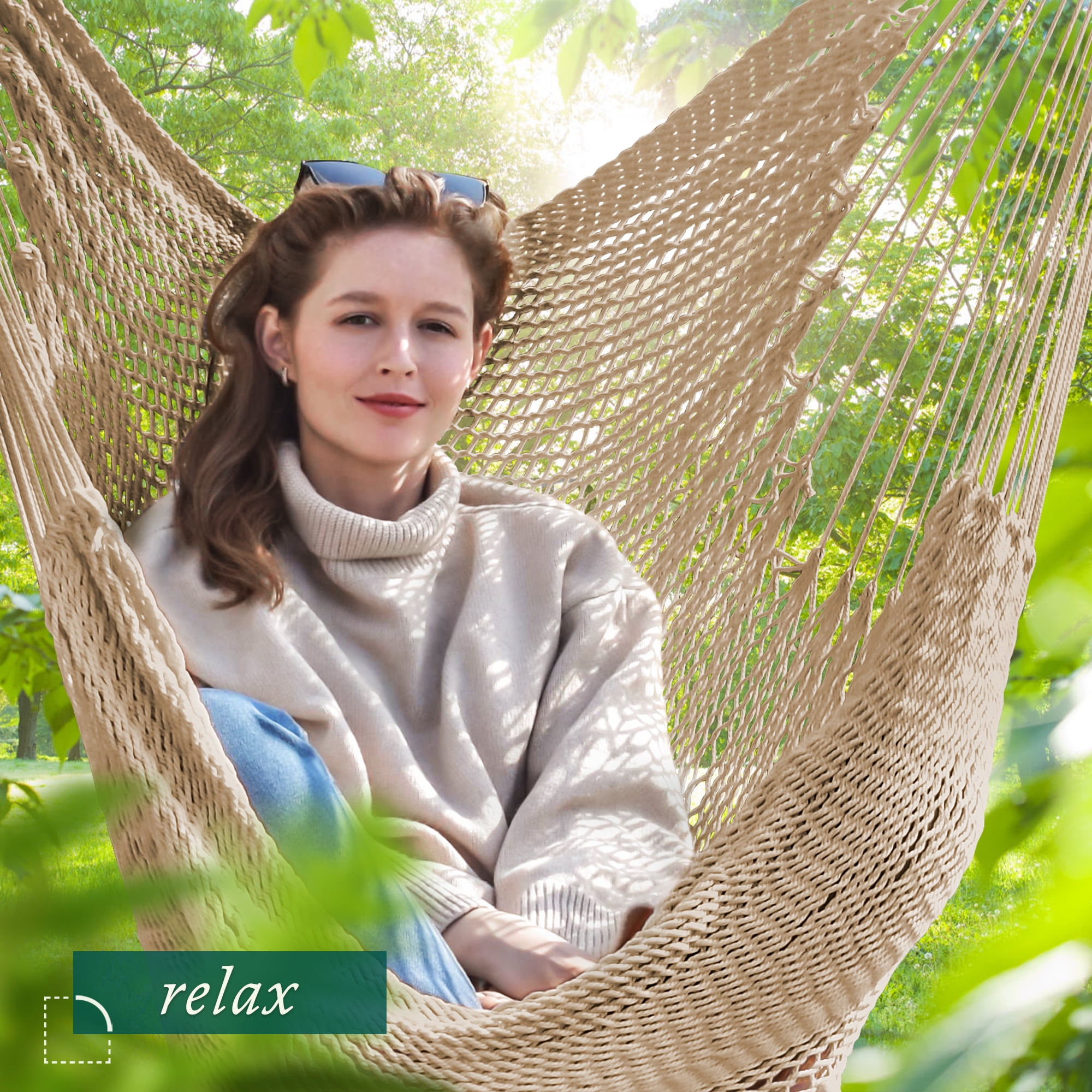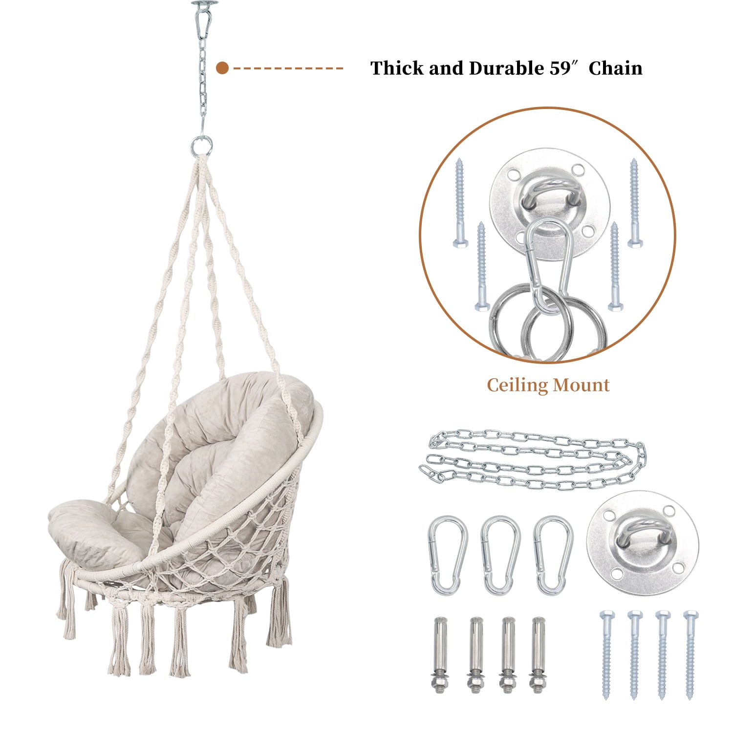 Bathonly Hammock Chairs, Bohemian Cotton Hanging Rope Swing for Indoor Outdoor, Beige, Max 330 lbs