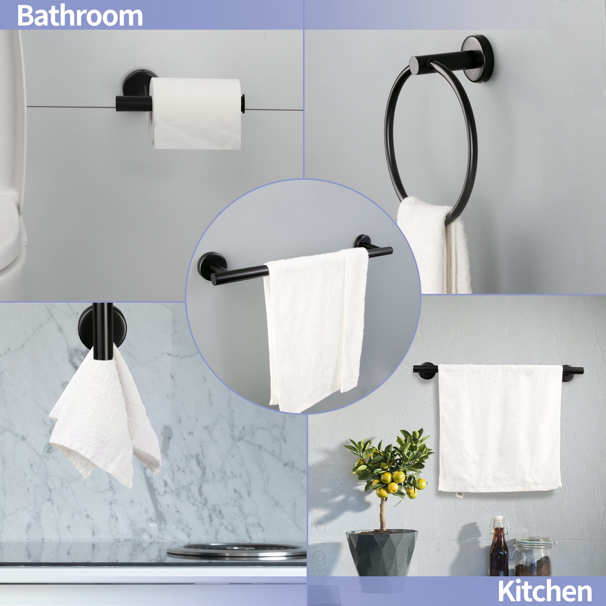 Bathroom Hardware Set, 6-Piece Matte Black Bath Accessories Set Wall Mount Includes 17/23″ Towel Bar,Toilet Paper Holder,Towel Ring, 2 Hooks SUS304 Stainless Steel,Heavy Duty