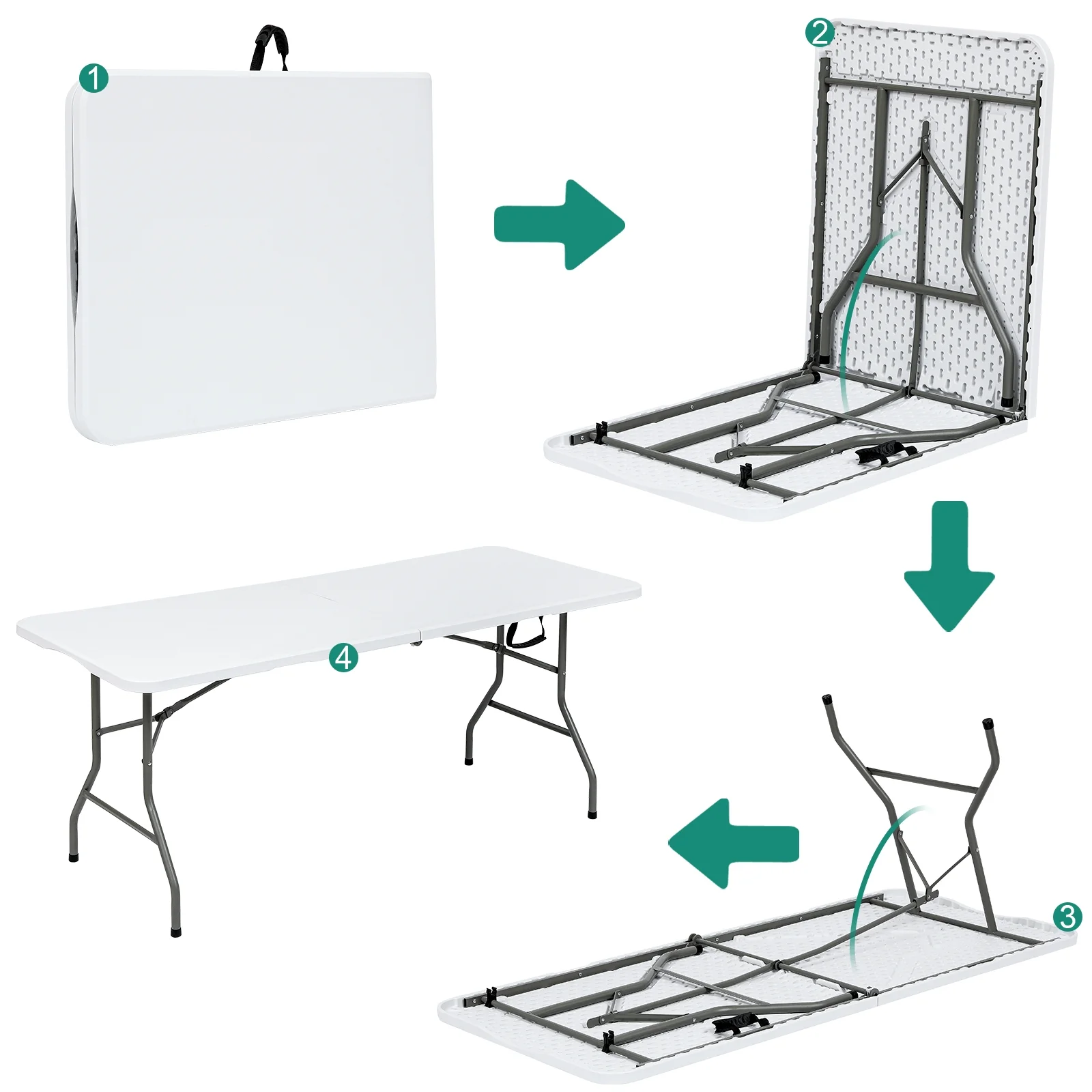 Vebreda Folding Table 6ft Plastic Folding Outdoor Table, White