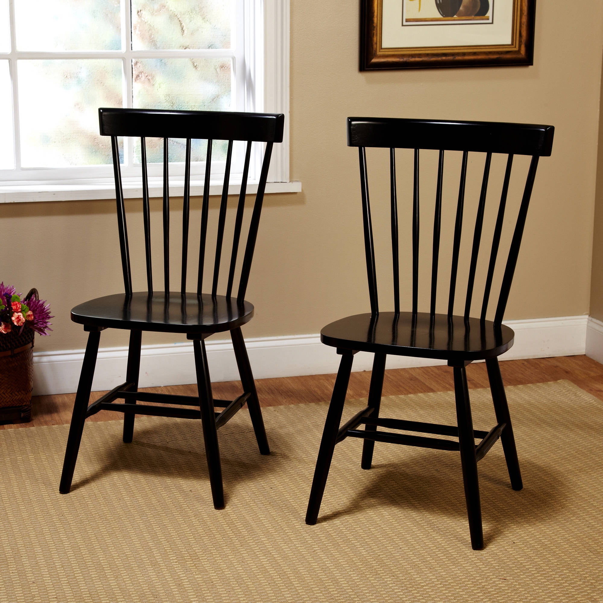 $110.08The Venice Chair Set of 2 Black Color is ideal whether you’re updating your decor or need extra seating. For home or business, they can be easily coordinated with other furniture pieces. Whether you need them for your living room, bedroom, home office or hallway, they are a welcome addition to a space. These Windsor back chairs are available in black color. Find a matching shade or choose one with contrasting appeal. These Venice dining chairs are designed with comfort in mind as they provide plenty of support for your back. You will appreciate the durability and practicality of these seats that are made from solid wood. Their lightweight design makes it easy to move them from room to room as needed and they are ideal when you are entertaining guests.