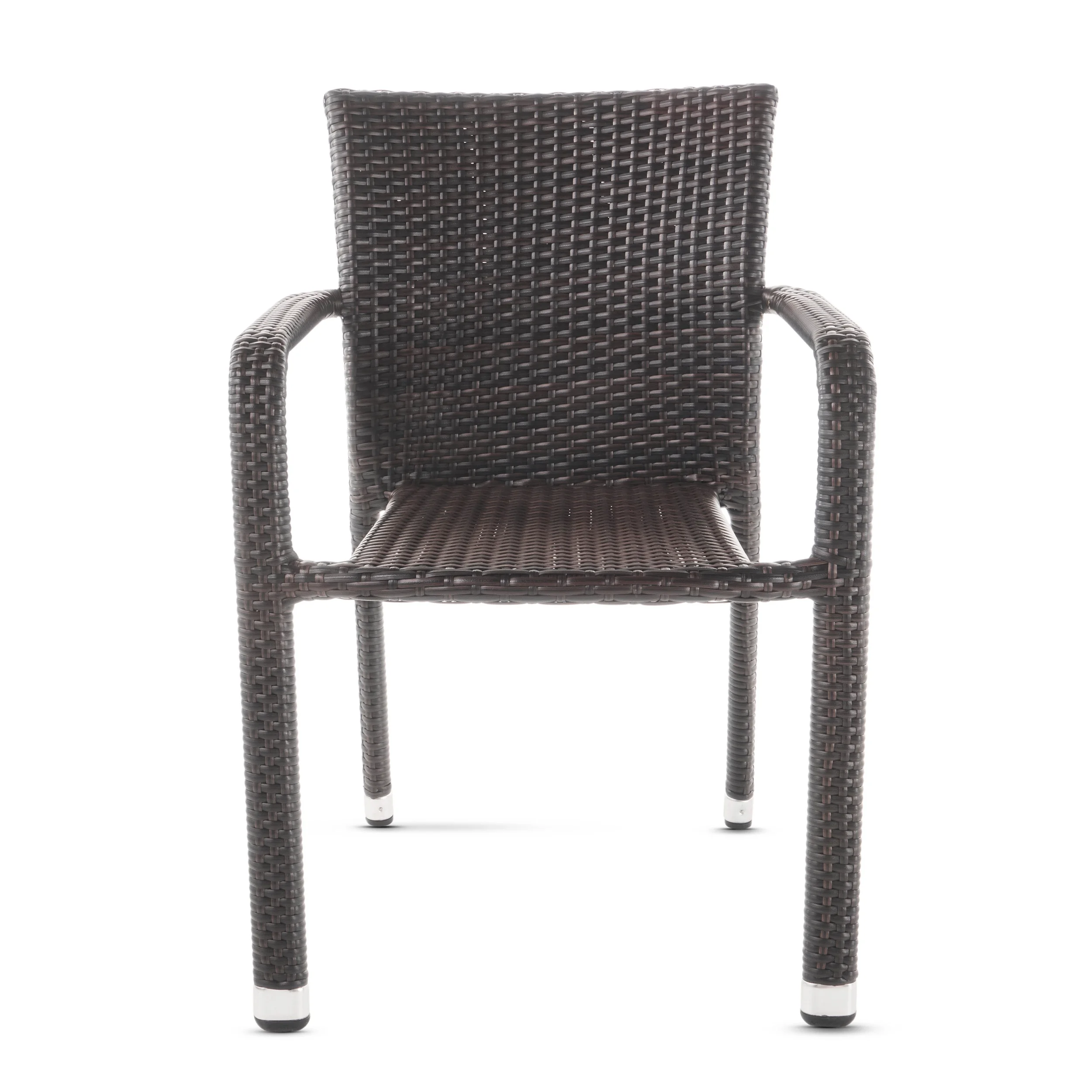 Vera Outdoor Wicker Armed Stacking Chairs with an Aluminum Frame, Set of 4, Multibrown