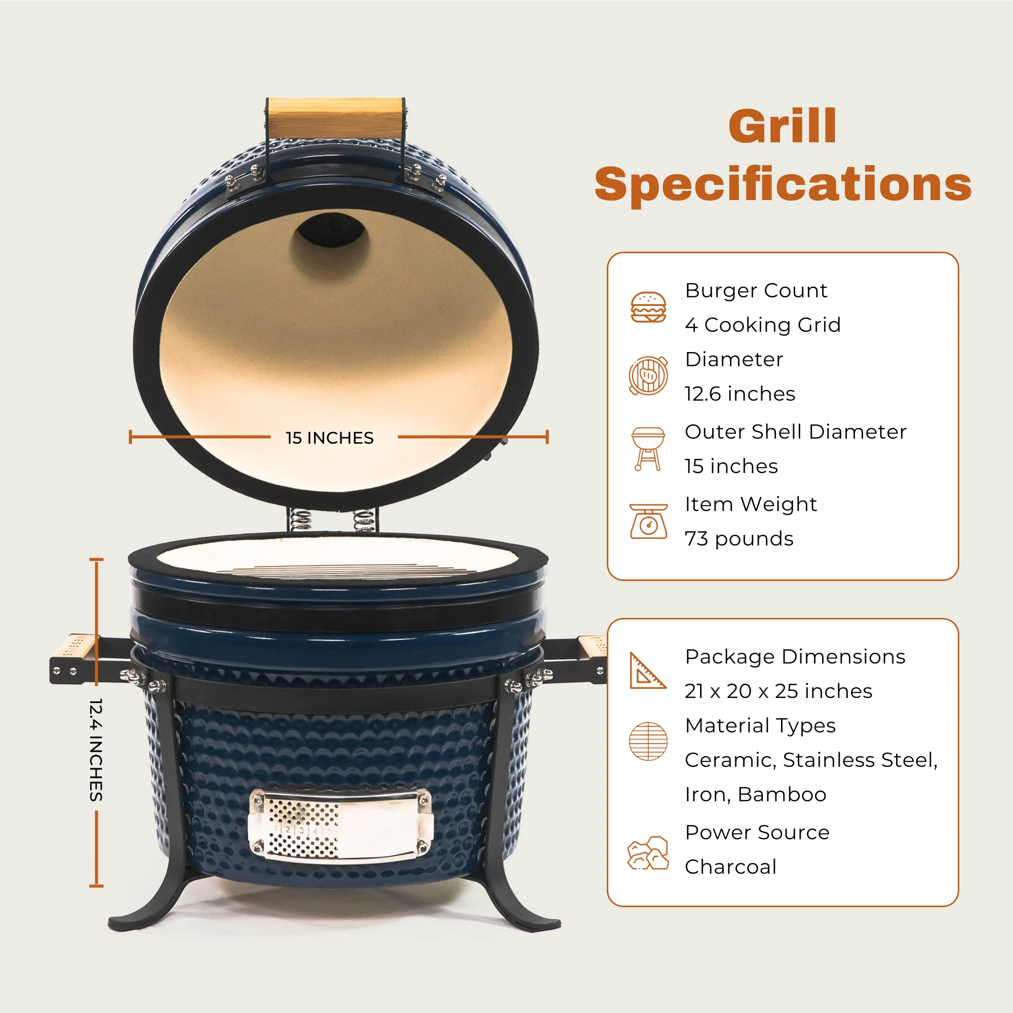 $326.79GRILLING EXCELLENCE Our ceramic charcoal smoker grill is your passport to outdoor culinary mastery. Crafted from the finest clay material, this portable smoker grill is built to last a lifetime, promising years of delicious meals and memorable gatherings. The smokers grills superior heat retention and even distribution create the perfect environment for succulent meats, crispy vegetables, and perfectly baked pizzas. The BBQ smoker versatile 5-in-1 design allows you to smoke, grill, bake, sear, and roast with ease, expanding your outdoor cooking repertoire beyond traditional barbecue. The precision-engineered venting system gives you pinpoint control over your cooking temperature, while the egg-shaped design helps with optimal heat circulation. The char broil grill compact 12.6″ stainless steel cooking grid offers ample space for intimate gatherings or small family meals, proving that great things come in small packages. UNMATCHED QUALITY When it comes to quality, our ceramic BBQ grill stands head and shoulders above the rest. The egg grill premium ceramic construction is fortified with the best coat and glaze in the industry, for durability that withstands the test of time and elements. The weather-resistant ceramics can withstand temperatures up to 750°F while remaining weather-resistant, meaning your portable camping grill is ready for action in any season. We’ve paid attention to every detail, from the smooth-operating hinge to the secure locking mechanism for a seamless grilling experience. The portable grills sturdy stand provides stability on any surface, while the spring-hinged dome lifts easily with just a finger, giving you full command over your cooking environment. ✔ Elevate your outdoor cooking game – get your hands on this smoker charcoal grill today and transform your backyard into a gourmet kitchen!